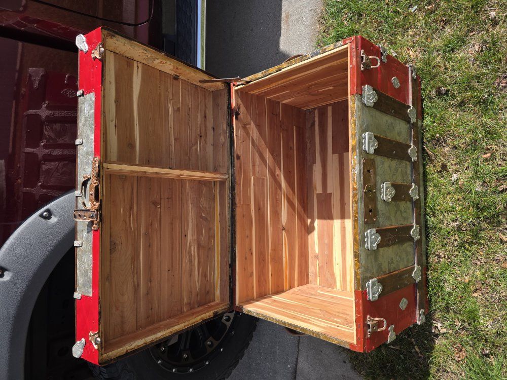 1800's strong box chest ,very good condition $500 cash firm on price, hump back treasure chest