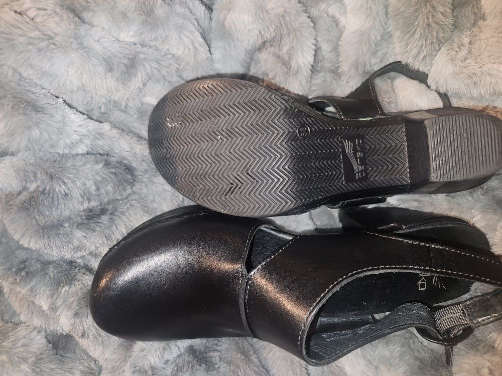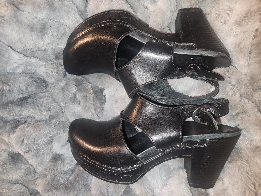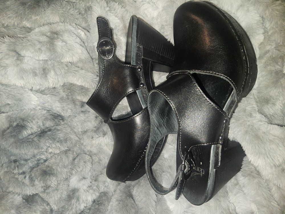 VenmoThe Dansko Riley Clogs in Euro Size 38 are stylish and comfortable slingback heels made of black leather. Designed for everyday wear, these shoes feature a block heel and a solid pattern, perfect for casual occasions. The leather lining and insole provide added comfort, while the slingback style adds a touch of elegance. With a versatile design suitable for the summer, fall, and spring seasons, these Dansko clogs are a popular choice for women looking for both style and practicality in their footwear.