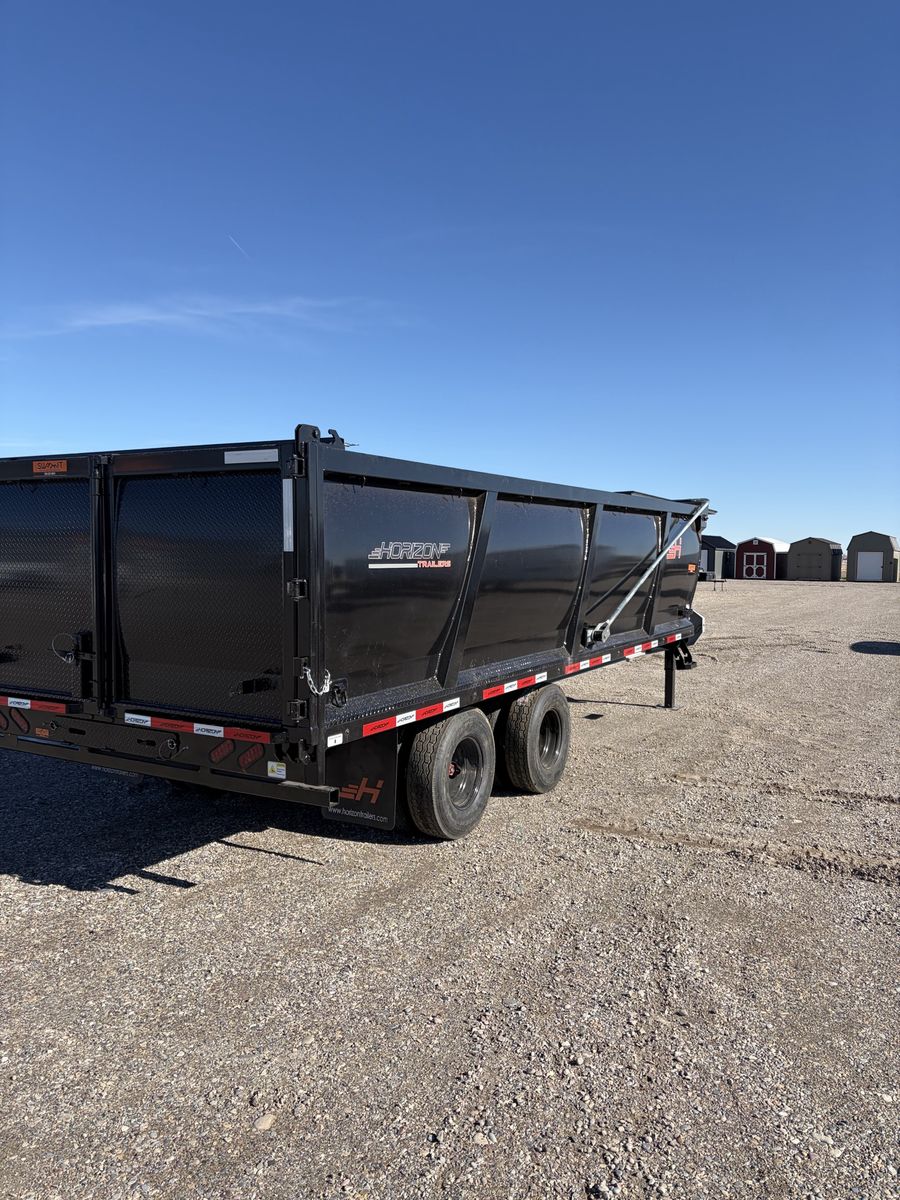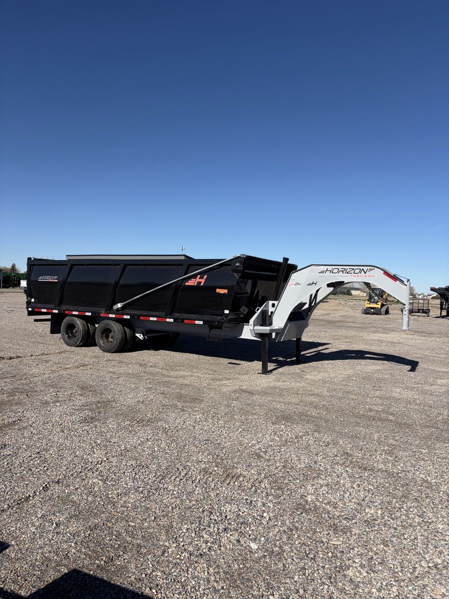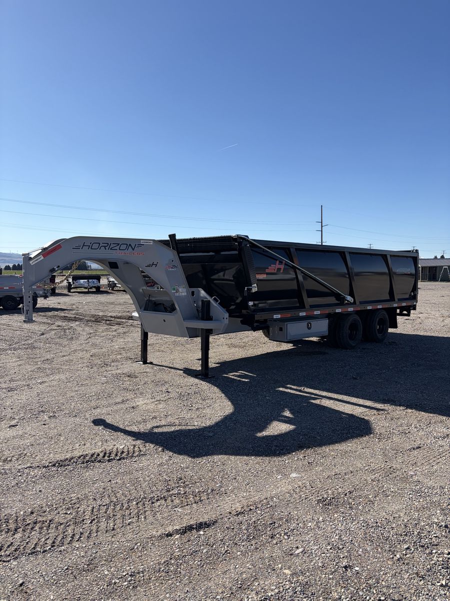 Horizon HZH 20’ long 8’ wide 4’ tall dump trailer. Gooseneck. Telescopic ram. Hydraulic Jacks. Crank Tarp kit. Spreader gate. Heavy duty ramps. 25k GVWR. Tandem dually oil bath Dextor axles. Warranty and financing available. Call or text Kade at 2082210041. Thanks.