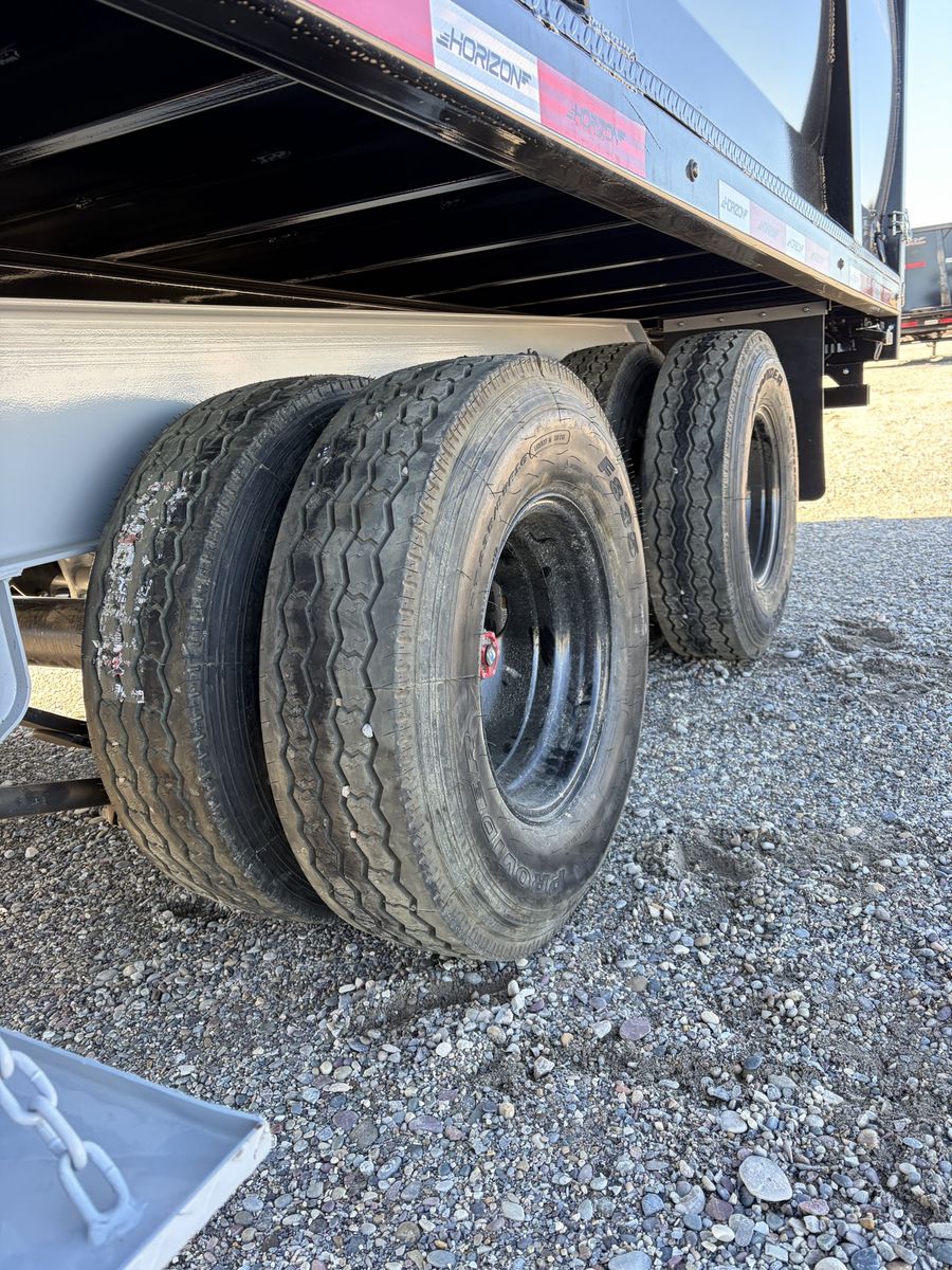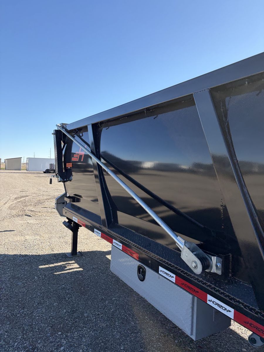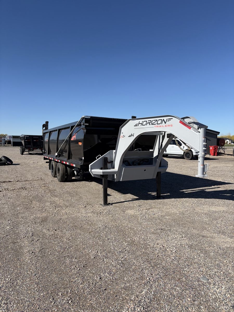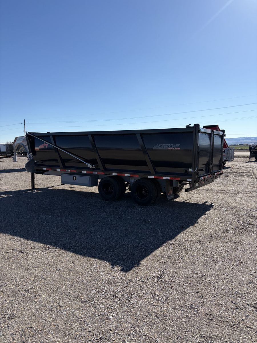 Horizon HZH 20’ long 8’ wide 4’ tall dump trailer. Gooseneck. Telescopic ram. Hydraulic Jacks. Crank Tarp kit. Spreader gate. Heavy duty ramps. 25k GVWR. Tandem dually oil bath Dextor axles. Warranty and financing available. Call or text Kade at 2082210041. Thanks.