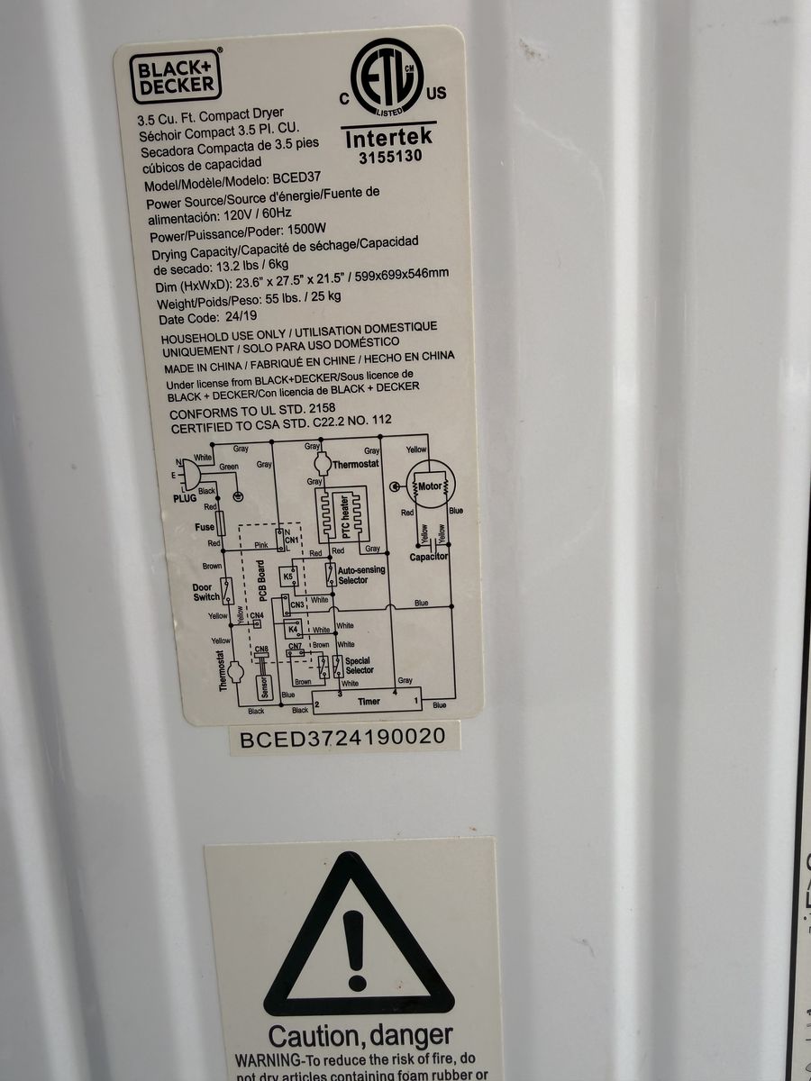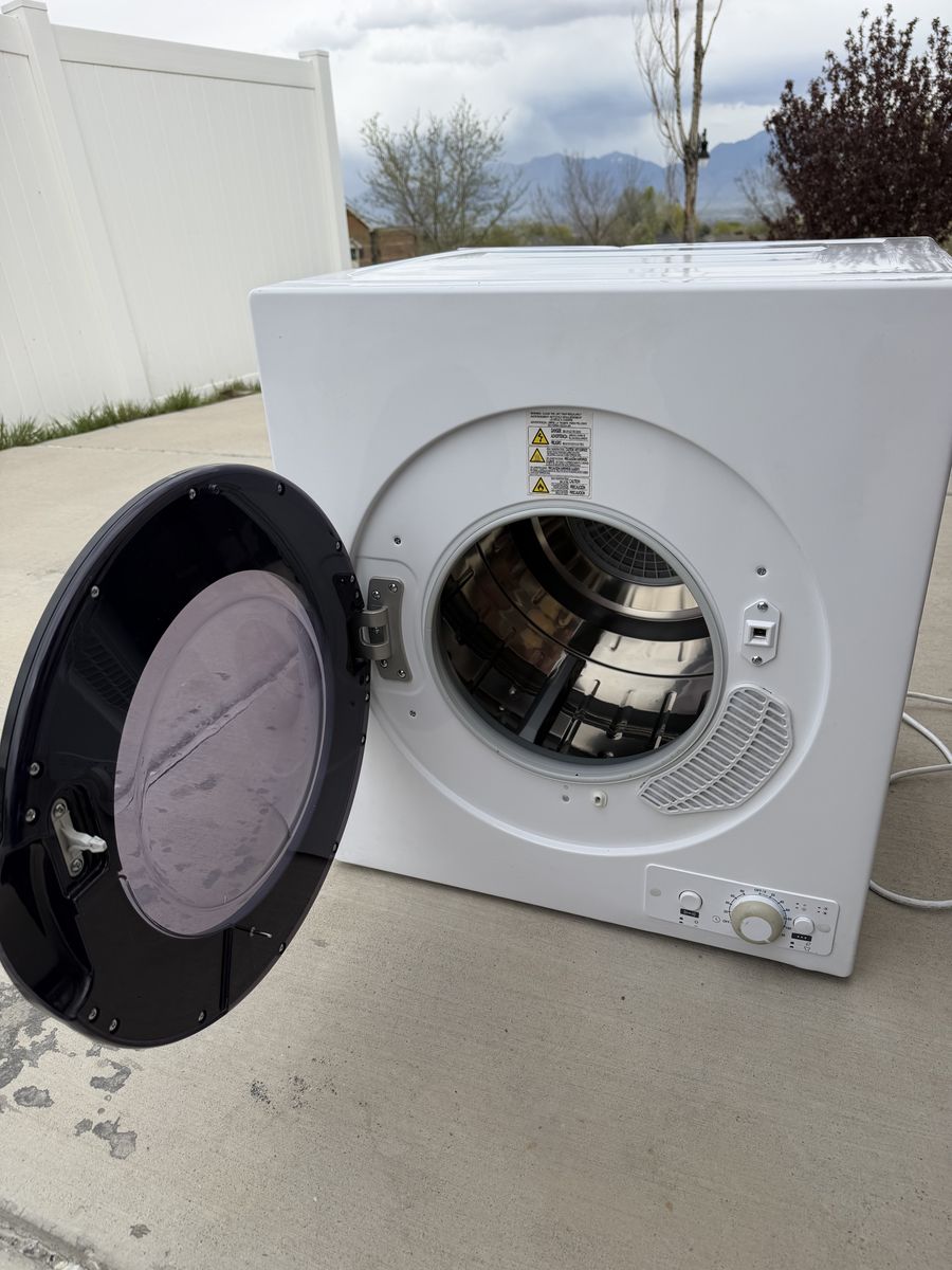 VenmoClean, dry clothes are no longer a luxury for larger homes and buildings. This B+D compact dryer (23.6" x 21.5" x 27.5") is ideal for smaller spaces and apartments. This mini dryer (49.5 lbs.) comes with a dryer vent hose that's 4" in diameter, as well as an exhaust connector, lint and exhauster filters. Enjoy drying up to 13.2 lbs. of laundry per load with an inside stainless steel capacity of 3.5 cu. ft. This outstanding 120V clothes dryer runs on 1500W and connects to standard outlets with its 3-proing plug. Choose your drying mode, whether Air Dry, Cool, Warm & Hot. Drying times vary between 30 - 200 minutes. The drying times will be extended over traditional full size dryers due to the fact that this unit uses 120V versus a 220V full size machine. Fill halfway for fluffy, freshy dried clothing. Safety is our top priority with this portable dryer with overheat protection and Sensor Dry, enabling dryer to measure moisture level and dry accordingly. Included are adjustable leveling legs, front loading transparent lid and compatibility with a variety of other B+D washers. ISTA-6A packaging ensures quality delivery.