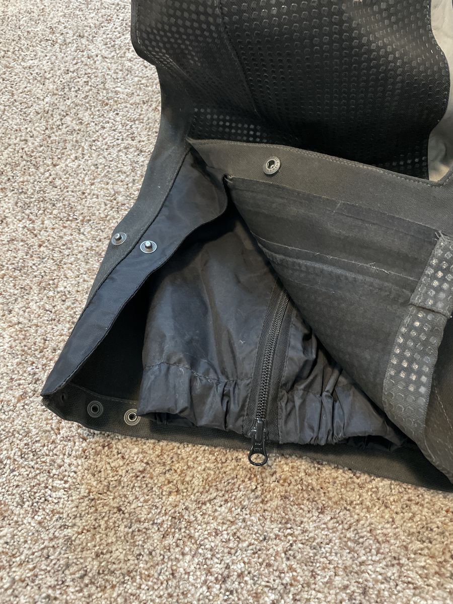 Jacket zip at waist Adjustable waist Zips and snaps at ankles
