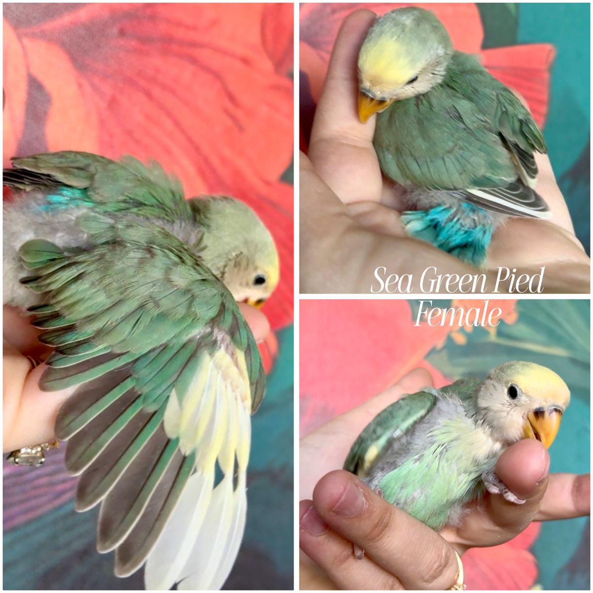These babies are handfed and come from disease tested parents to ensure you're bringing in a healthy bird into your house and flock! the oldest green is a female and is weaned and ready to go home