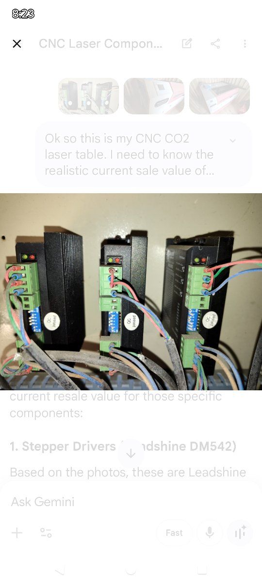 Controller: Ruida RDC6442G DSP. The standard for LightBurn. Includes mainboard and color HMI panel. Drivers: Leadshine DM542 Stepper Drivers (Set of 3). Industrial anti-resonance for NEMA 23/24. Cooling: S&A CW-3000 Chiller. Reliable high-wattage cooling. 2. Model: SaleCNC BX-1310 Heavy-Duty Chassi. $500 Hardware: Includes all Linear Rails and Ball Screws (mounted/aligned). Build: Rigid structural steel. Perfect for CNC Router or Plasma conversion.