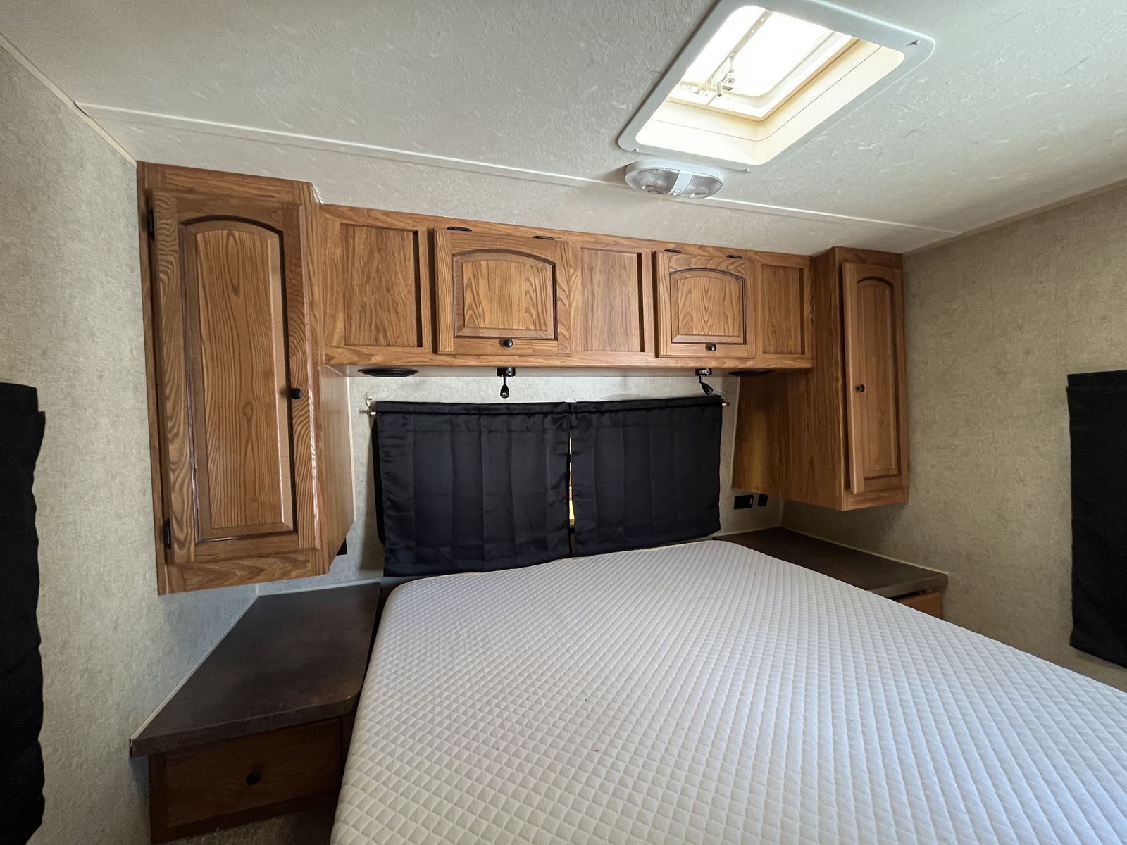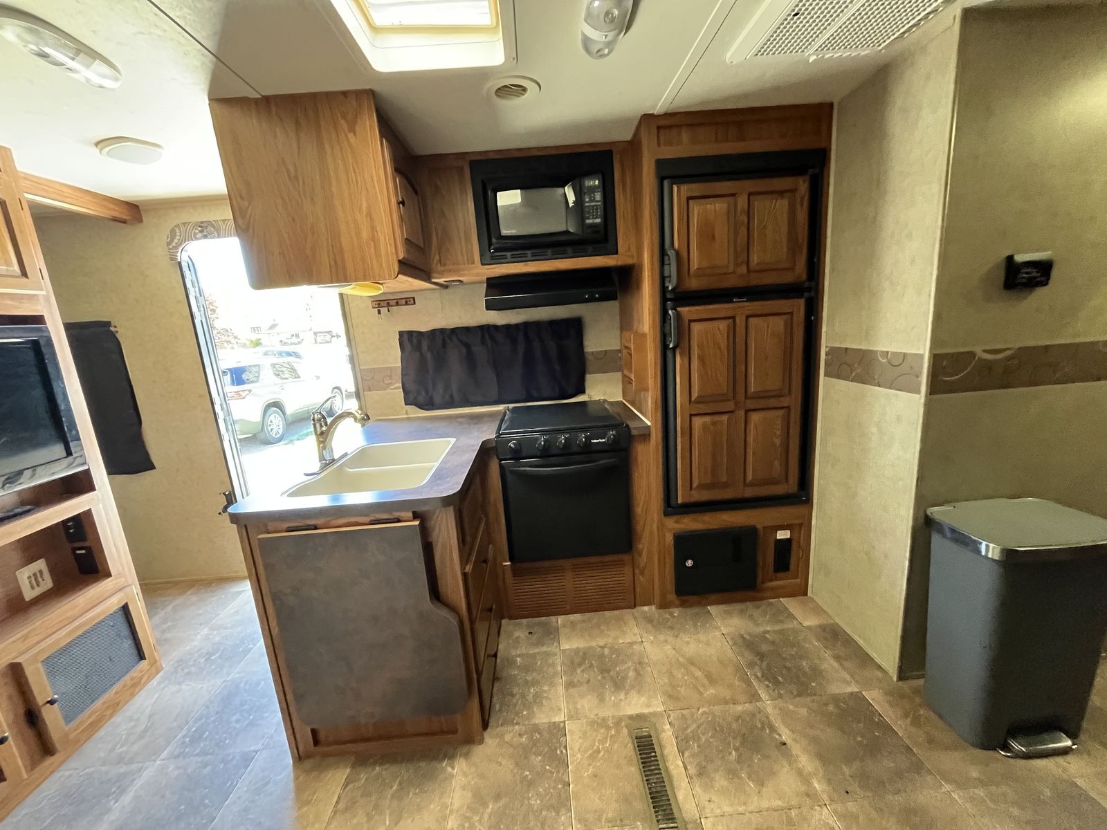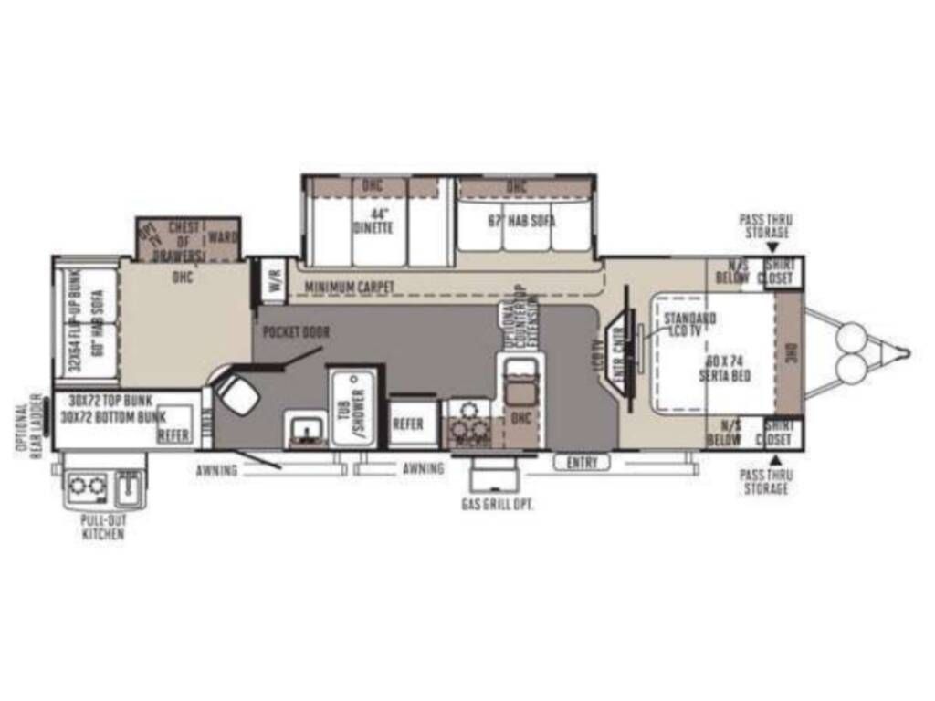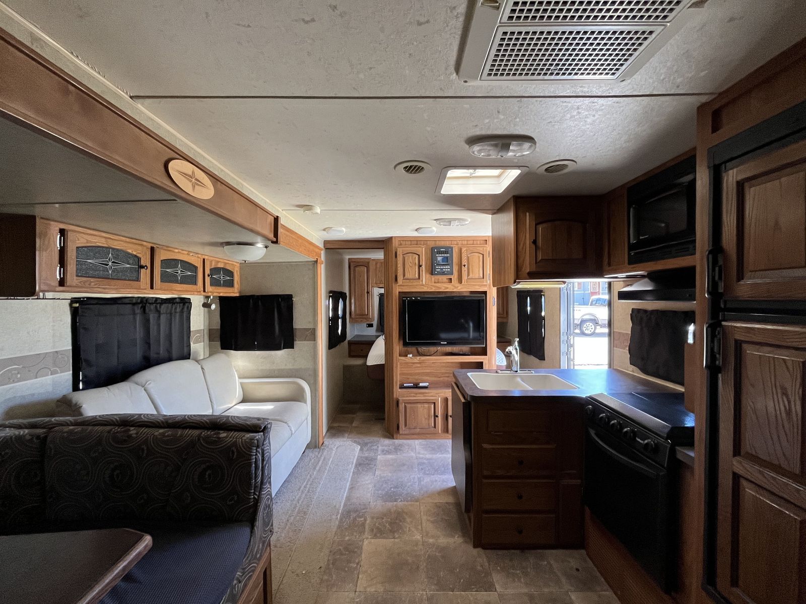 Spacious 34' bumper-pull travel trailer ideal for families. 2 slide-outs, 3 twin bunks, 2 sleep sofas (full air mattresses), queen front bed, and convertible dinette — comfortably sleeps 8+. Large kitchen + outdoor kitchen with LP grill hookup, outdoor shower. Recently replaced furnace, hot water heater, toilet, roof vent covers, power jack, and new hybrid memory foam mattress in bedroom. Used just one hunting season since updates. Awning covers are sunbaked and need replacement (awnings still work). Family outgrew it — well cared for and ready for more adventures.