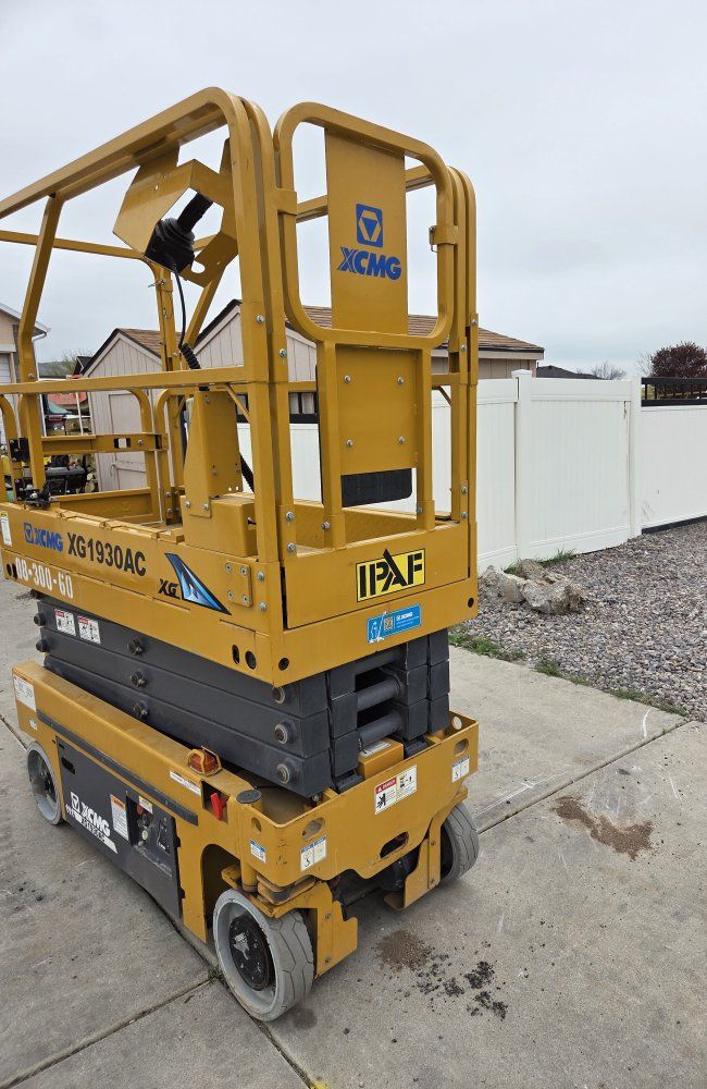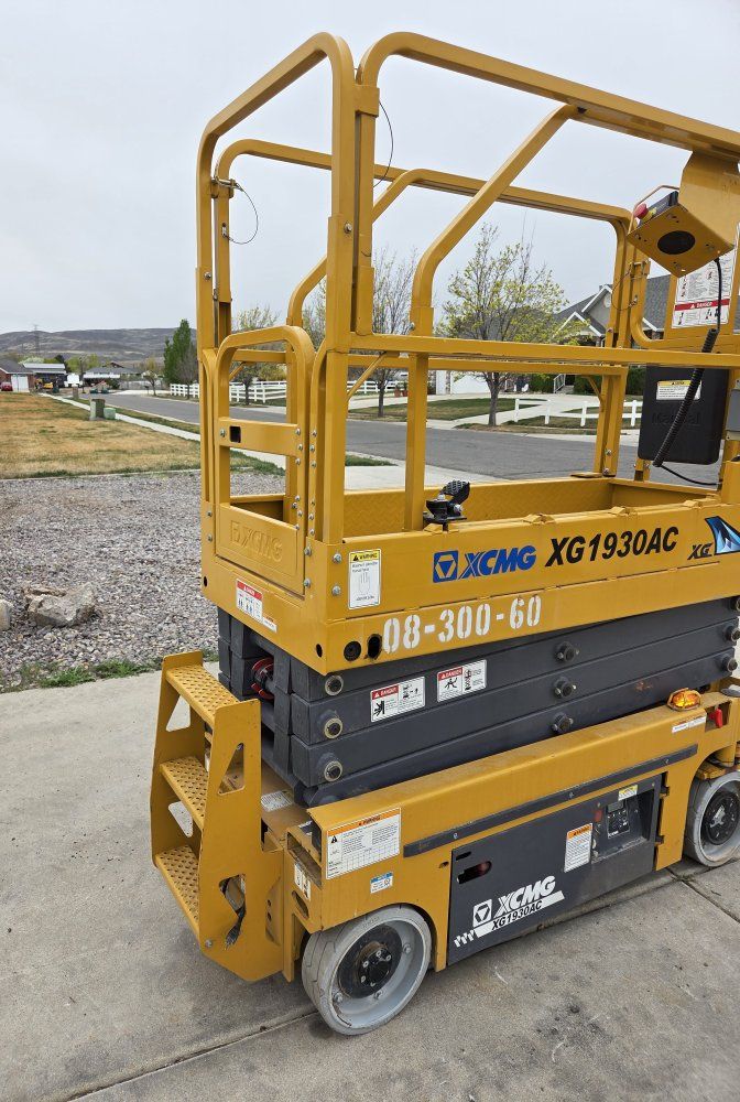 2023 XCMG XG1930AC Electric Scissor 2 Lift with only 60 hours $6800.00. 1 with 8 hours for $7600.00. 19ft Max platform height, 24ft Max working height, platform extention, power to platform, 500lbs max working weight, onboard battery charger, non marking tires, New batteries. The XCMG XG1930AC electric scissor lift typically includes an industry-leading 5-year manufacturer warranty. This is often marketed by major North American dealers as a 5-year / 5,000-hour full machine warranty.