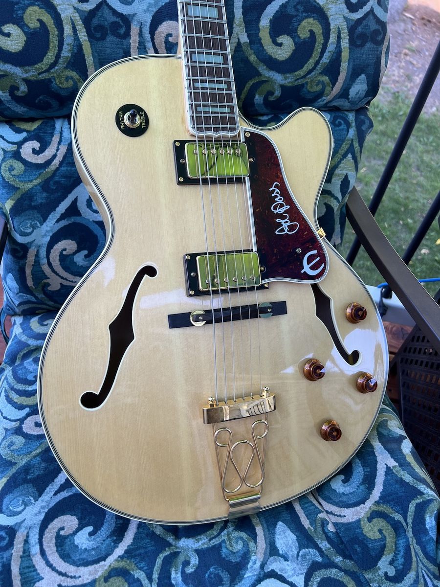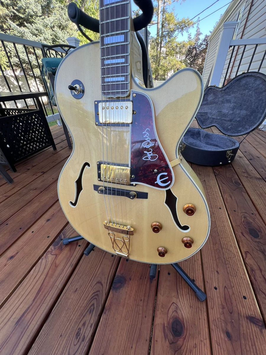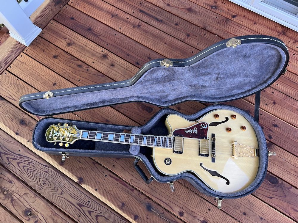 Original owner 1994 era Epiphone Emperor Joe Pass. Like new mint condition. Been in its case its entire life and rarely played. Serial dates it to Samick factory in Korea where original production for this model was done.