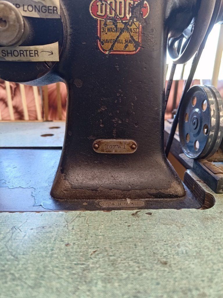 Singer 107w1 Zig Zag sewing machine. This machine works great. I used it on leather. Comes with table, spool holder, spools of thread, some leather needles and 3 bobbins