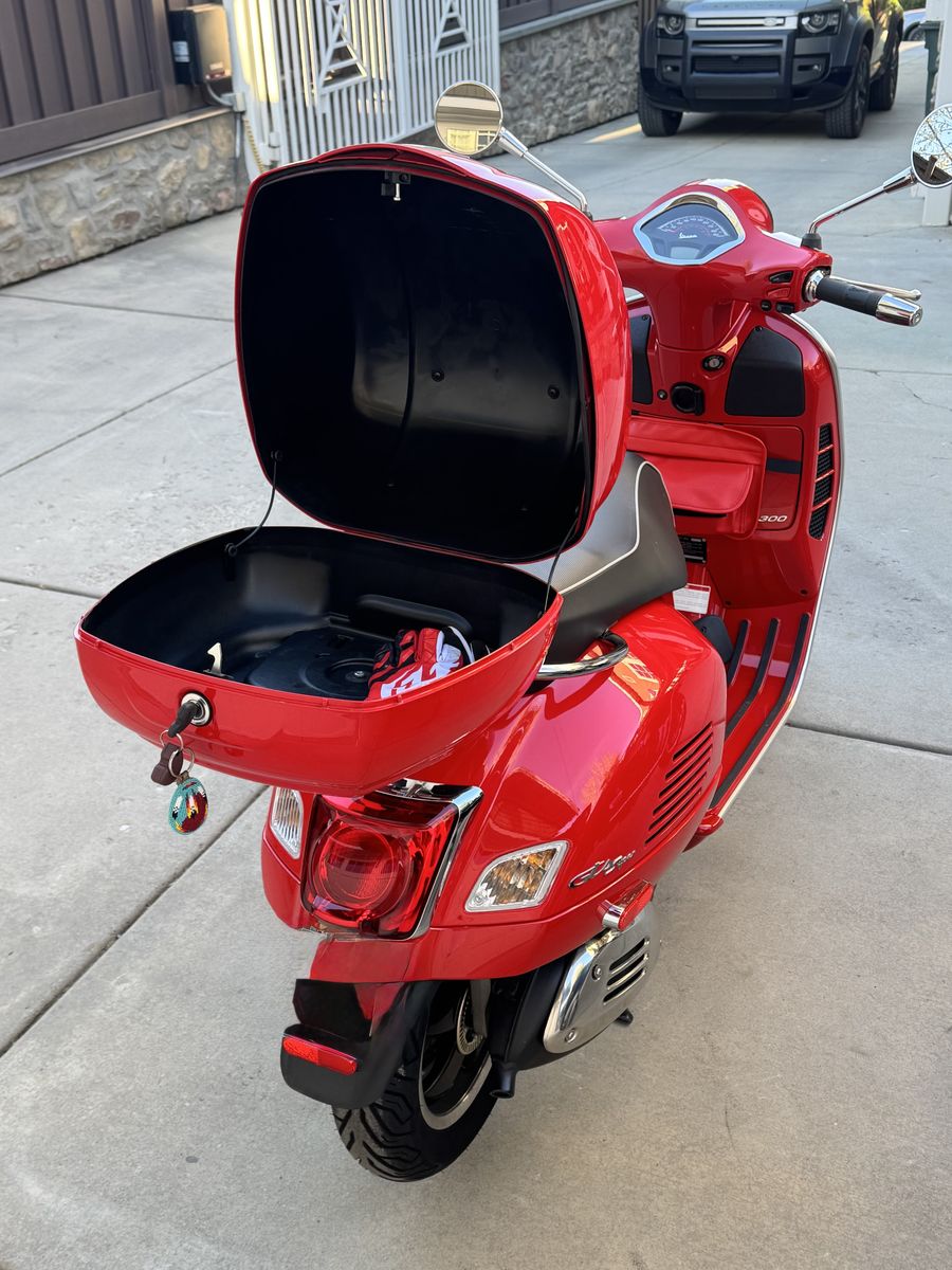 Vespa GTS 300 hpe for sale. In immaculate shape. New Battery, under 340 miles. Has a luggage trunk and helmet if wanted. Everything is perfect!
