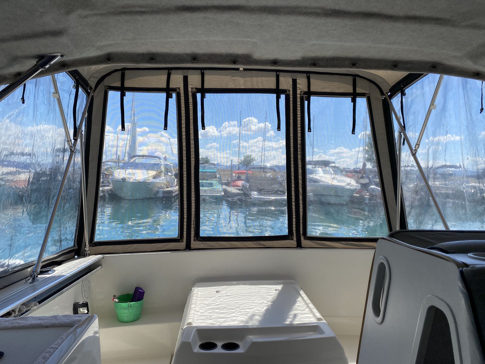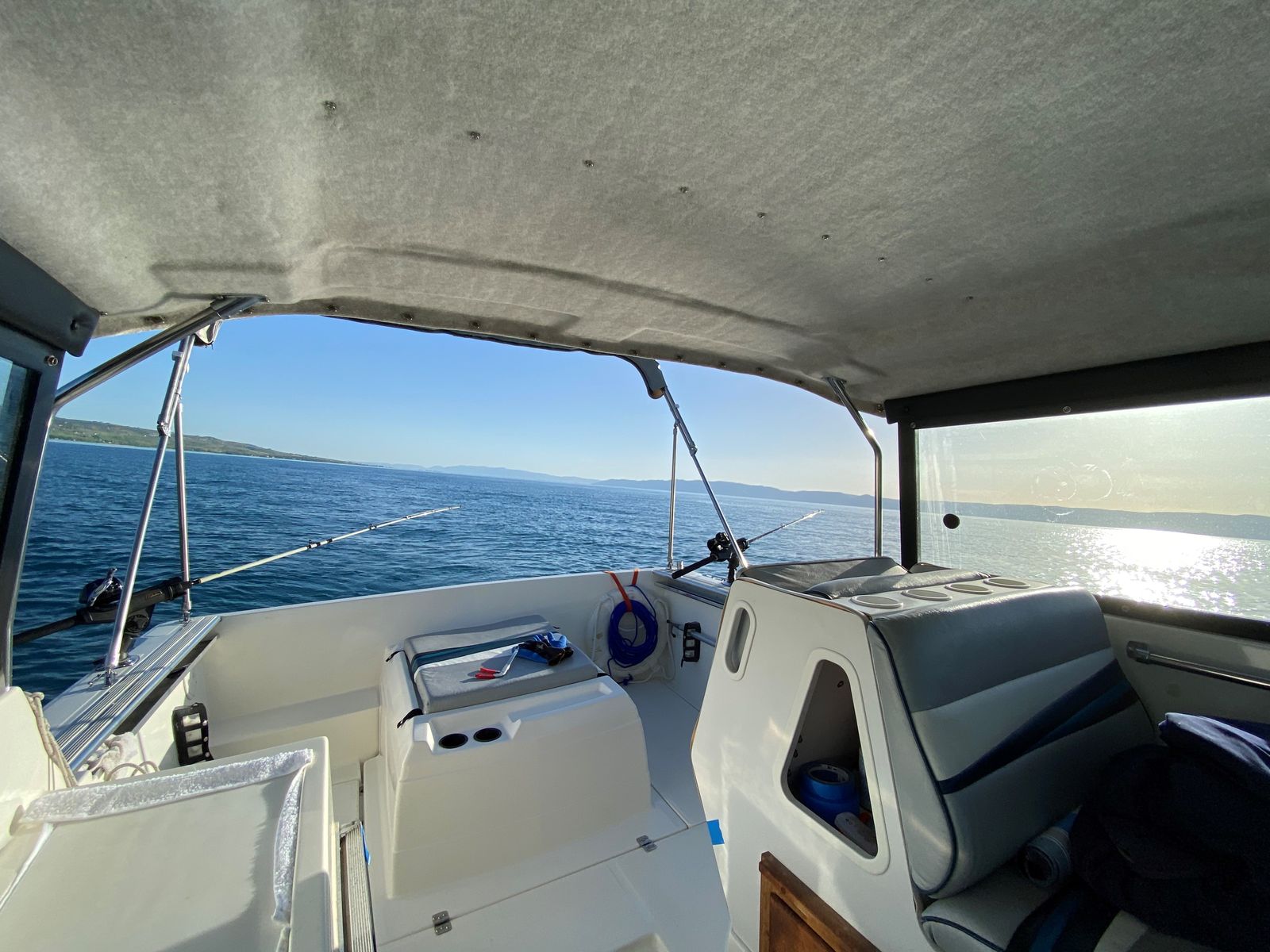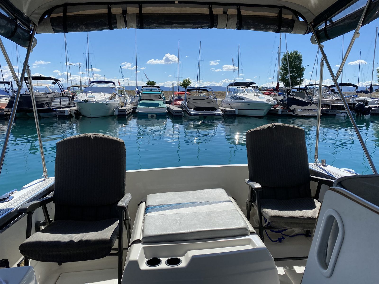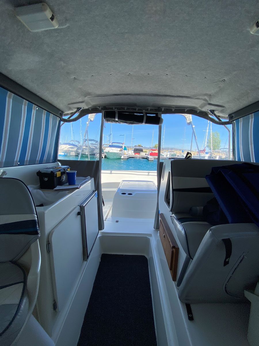 1991 Bayliner 2159 hardtop cuddy in great condition, all fiberglass interior (no plywood), w/twin axel galvanized trailer, Goodyear Endurance US made tires, all in great condition. 4.3 liter Mercruiser I/O 1053 hrs. Professionally maintained. Hydraulic trim tabs. New outdrive rams. Circulating bait tank. Below deck fish cooler. 20” Lewmar Ocean deck hatch, anchor rode deck pipe, anchor tensioner, dock line chocks, radar arch. Galley with 12V water system and ice box. All LED interior, cockpit lighting and gunnel lighting. Sleeps 3 (2 in V berth and 1 in quarter berth). Like-new interior cushions with new firm foam. Full suite of canvas accessories: bimini, cockpit cover, bulkhead cover, side and windshield curtains, side window screens, full custom camper enclosure with screens and roll-up/removeable windows, 2 sets of cockpit carpets, full custom winter cover, Port-a-Potti. 4 step extendable swim ladder with boarding handle. Electronics: JVC CD/XM/Bluetooth stereo, ICOM DSC/GPS marine radio, Humminbird Helix 7 DI GPS fish finder, CO monitor, fuel vapor detector. Extra prop and many maintenance items. Excellent for overnight stays. $15,000. 435-294-5677 or 435-294-5491.