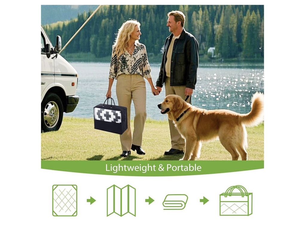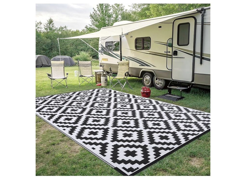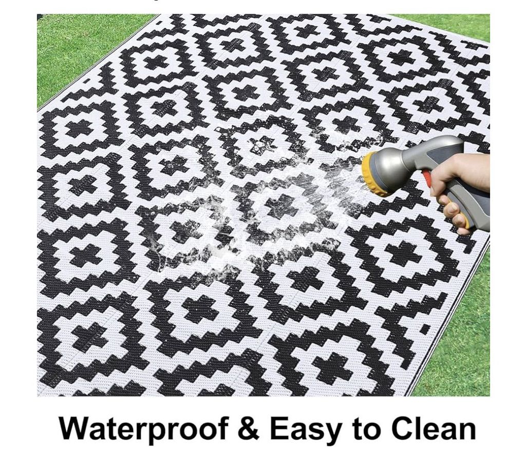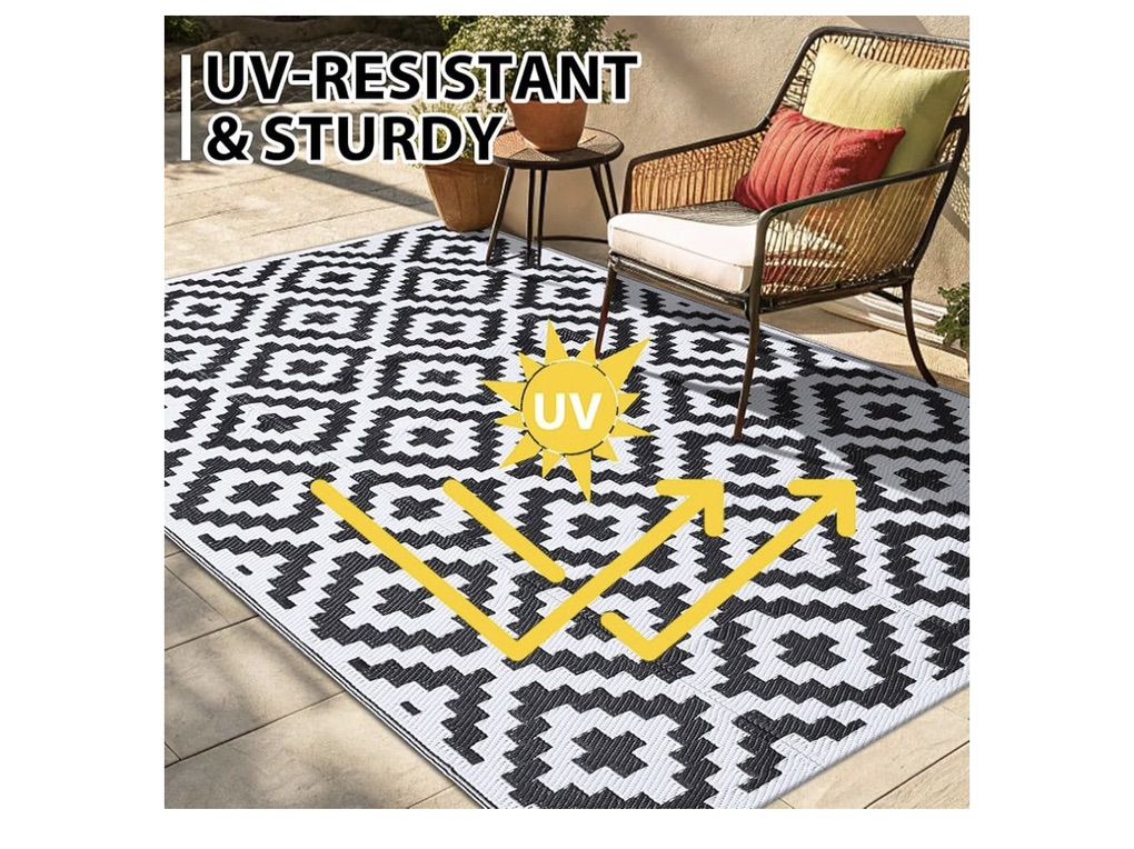 VenmoSmiry Waterproof Outdoor Rug 8x10 ft, Reversible Plastic Straw Patio Camping Rugs, Outdoor Indoor RV Mat Carpet for Patio, Outside Entry, Backyard, Deck, Bench, Picnic, Camper, Black & White. New. $60