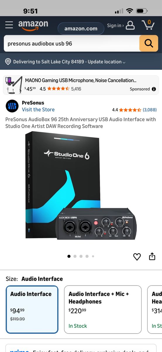 Very nice like new! Usb PreSonus 96 audio interface with cord! This exact interface is currently on Amazon for 94.99 right now as shown in photos! Don’t pay retail, call Dustin instead at 801-205-3404, I need it gone!