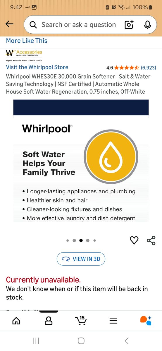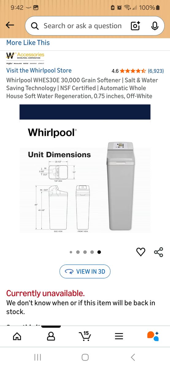 VenmoBrand new Whirlpool water softener. It has never been installed or used. It is out of the box, but complete and not damaged in any way.