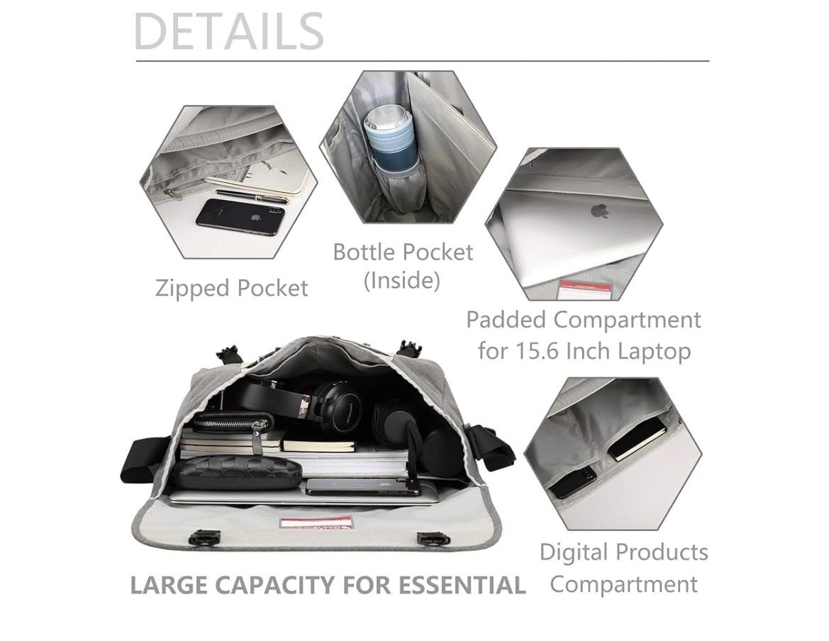 VenmoOIWAS gray messenger bag, often sold as a travel satchel or laptop briefcase suitable for work or school.