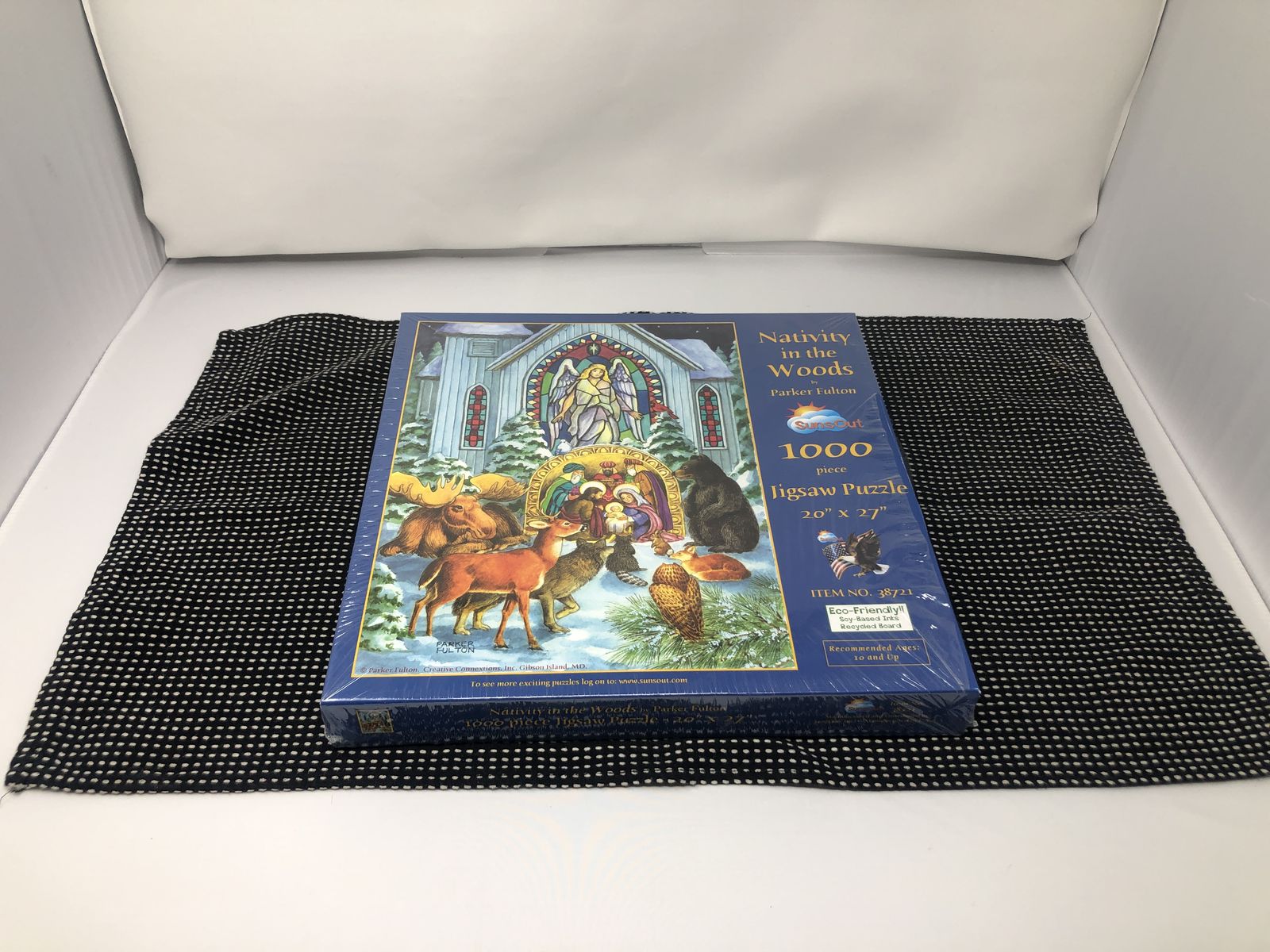 VenmoTitle: Nativity in the Woods by Parker Fulton Brand: SunsOut Piece Count: 1000 Pieces Condition: Brand New, Factory Sealed in original plastic. Finished Size: 20" x 27" Item Number: 38721