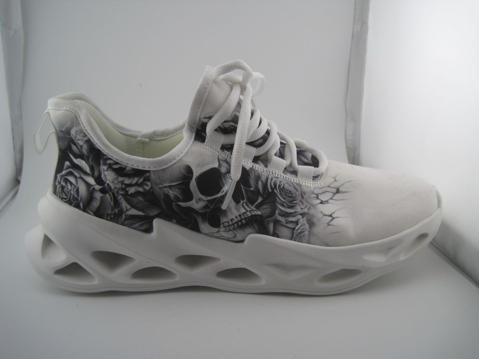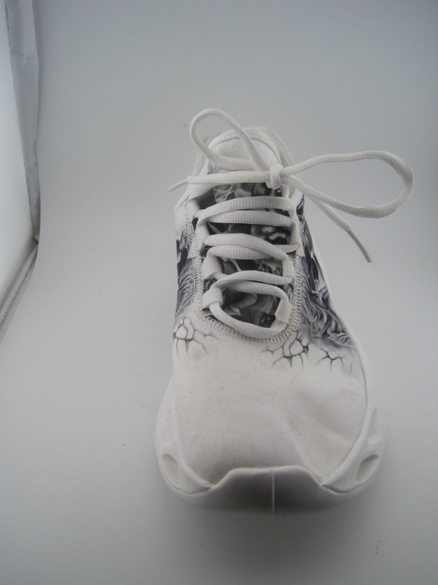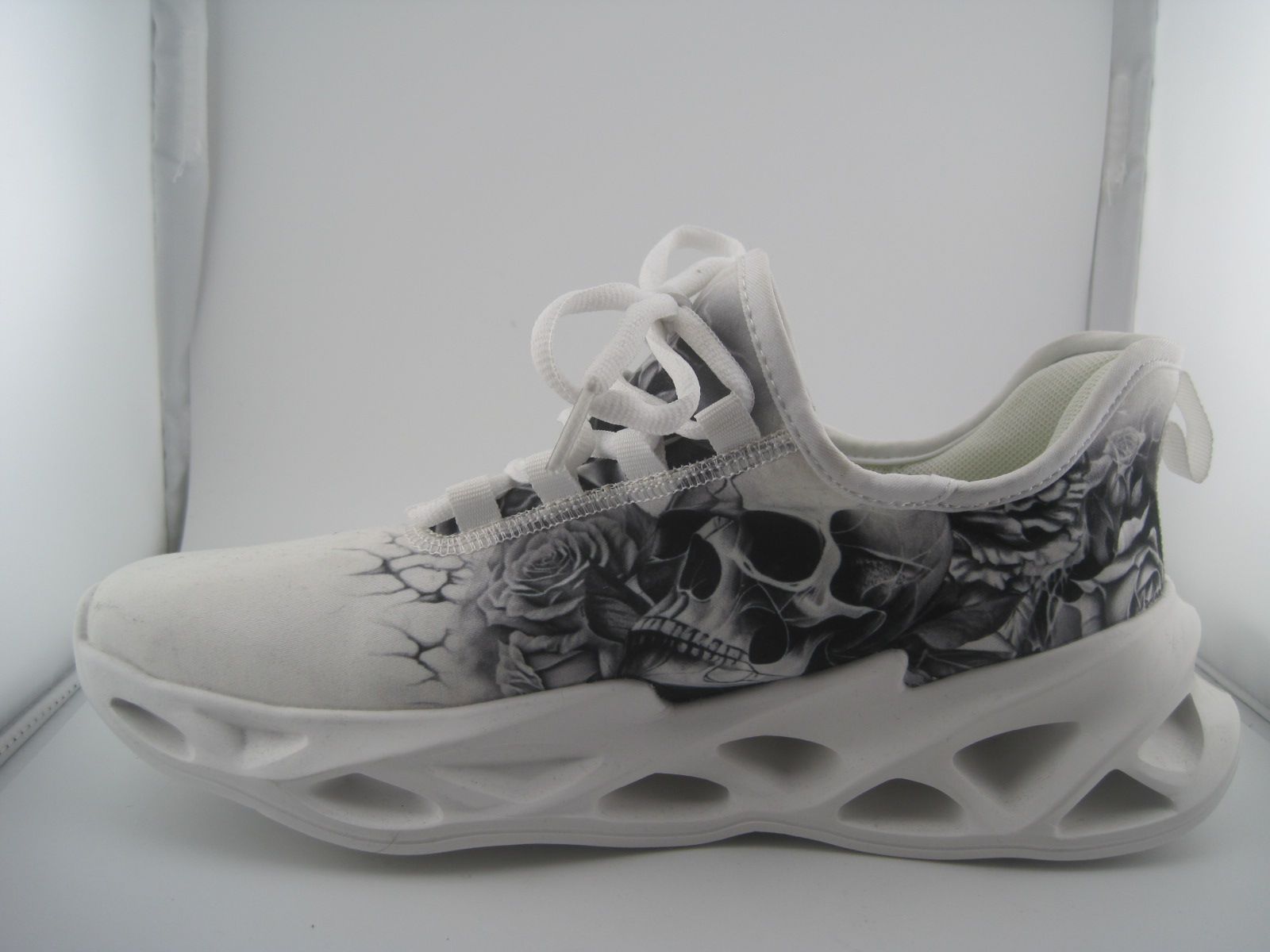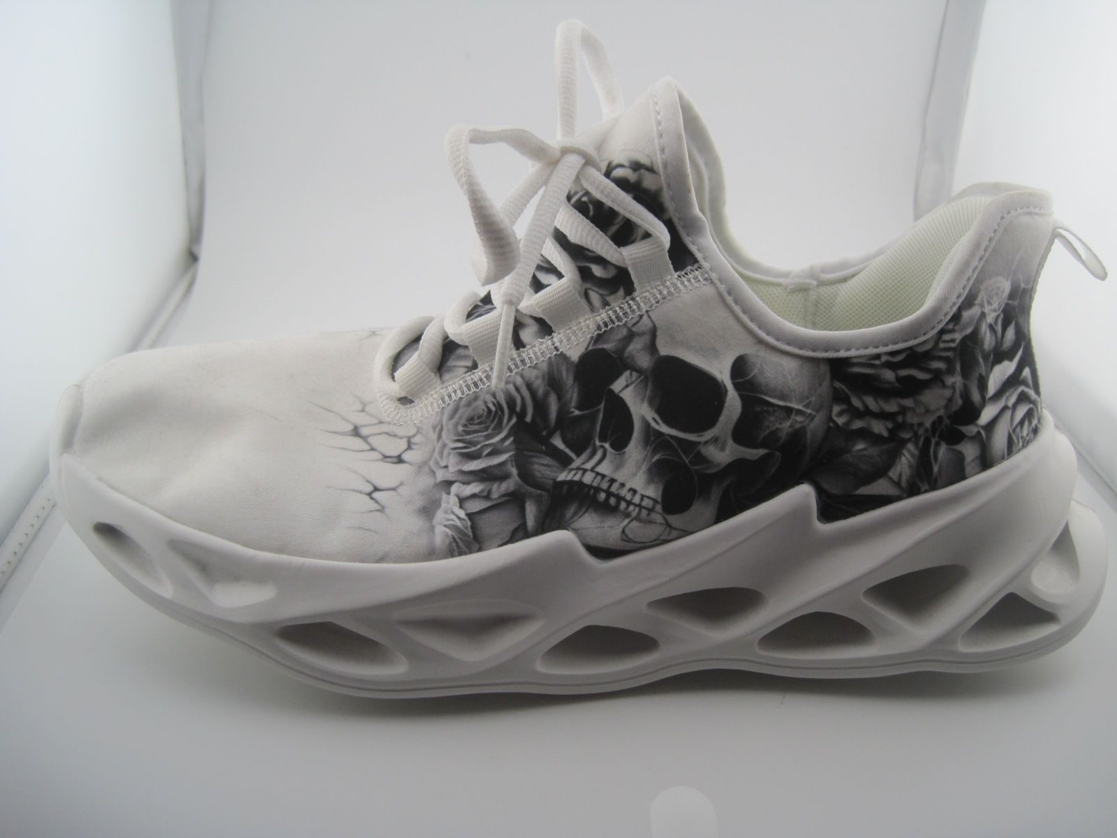 These unbranded Men's White Skull Gothic Lightweight Cushion Running Shoes in size 9 are perfect for those looking for a unique and stylish running shoe. Featuring a low top shaft style, lace-up closure, and cushioned insole, these athletic shoes offer comfort and breathability for various activities. The white color and skull gothic theme make them a bold statement for casual or activewear occasions. Made with a durable rubber outsole, these sneakers are lightweight and designed for performance in activities like gym training, running, and walking. Ideal for summer, fall, and spring seasons, these shoes are a stylish and functional choice for men.