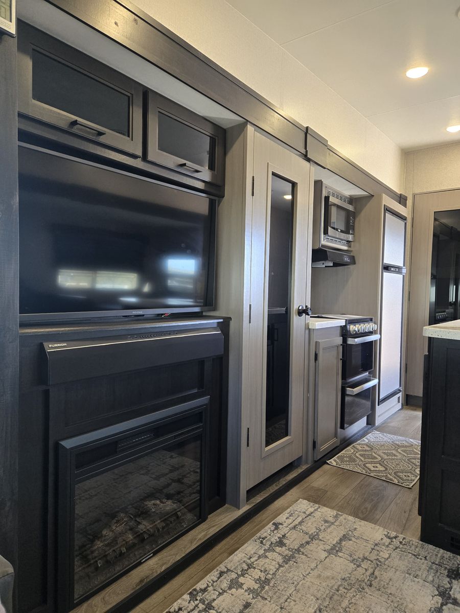 Solar panels plumbed for catalytic heater 3 slideouts UV protectant applied 3-2026 Extended warranty good for 32 months Double heated recliners hide a bed electic awnings with lights 3 propane tanks Maintenance records available