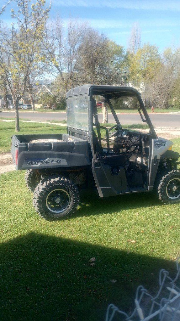 2020 Polaris ranger 570 with power steering. IT has four wheel drive two wheel drive and one wheel drive so it doesn't tear up your lawn when turning on it. IT has four new tires last year and a band new battery last week. comes with a roof top back window front windshield and a 3000 lb winch on it. it has a spare tire and a extra drive belt. and 2 extra air filters.