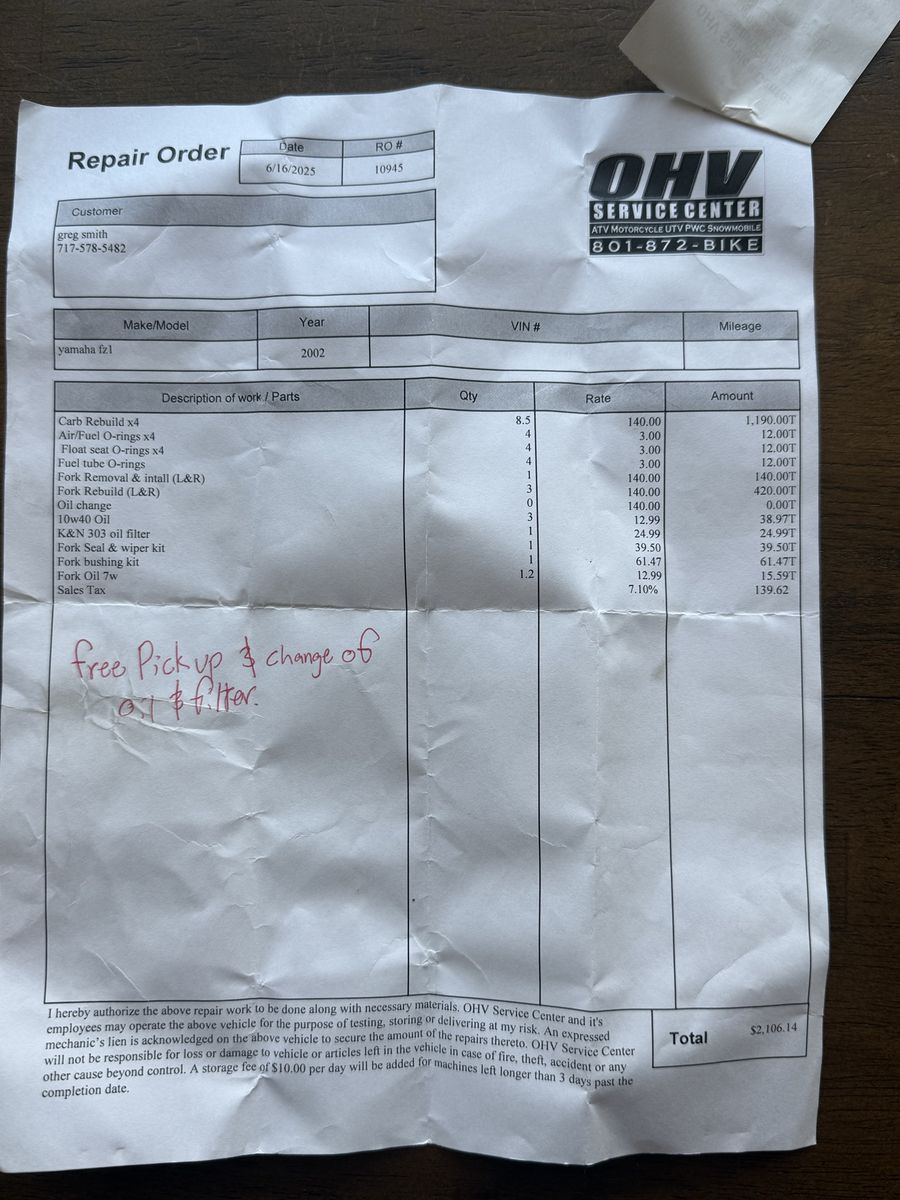 Venmo2002 Yamaha FZ1 with 21k miles. In great condition for an older bike. Had carbs and front forks rebuilt by OHV Service last year. Going to be moving in a few months and can’t take it with me.