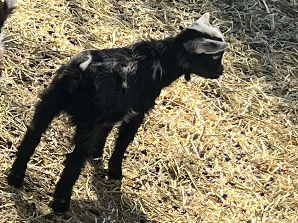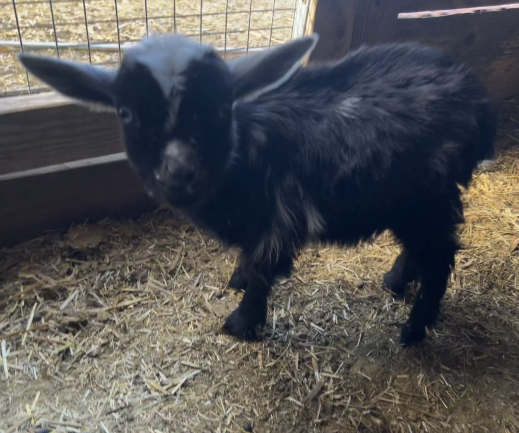Nigerian dwarf bottle buckling. Born February 8. He has been disbudded and is on a bottle twice a day and also eating hay and grass. $80.