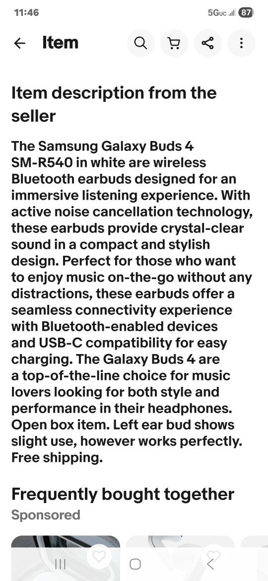samsung galaxy buds 4 2026 new s-mr540 wireless bluetooth, thank you so much. Noise-canceling. listen and experience. Perfect for those who like to enjoy music