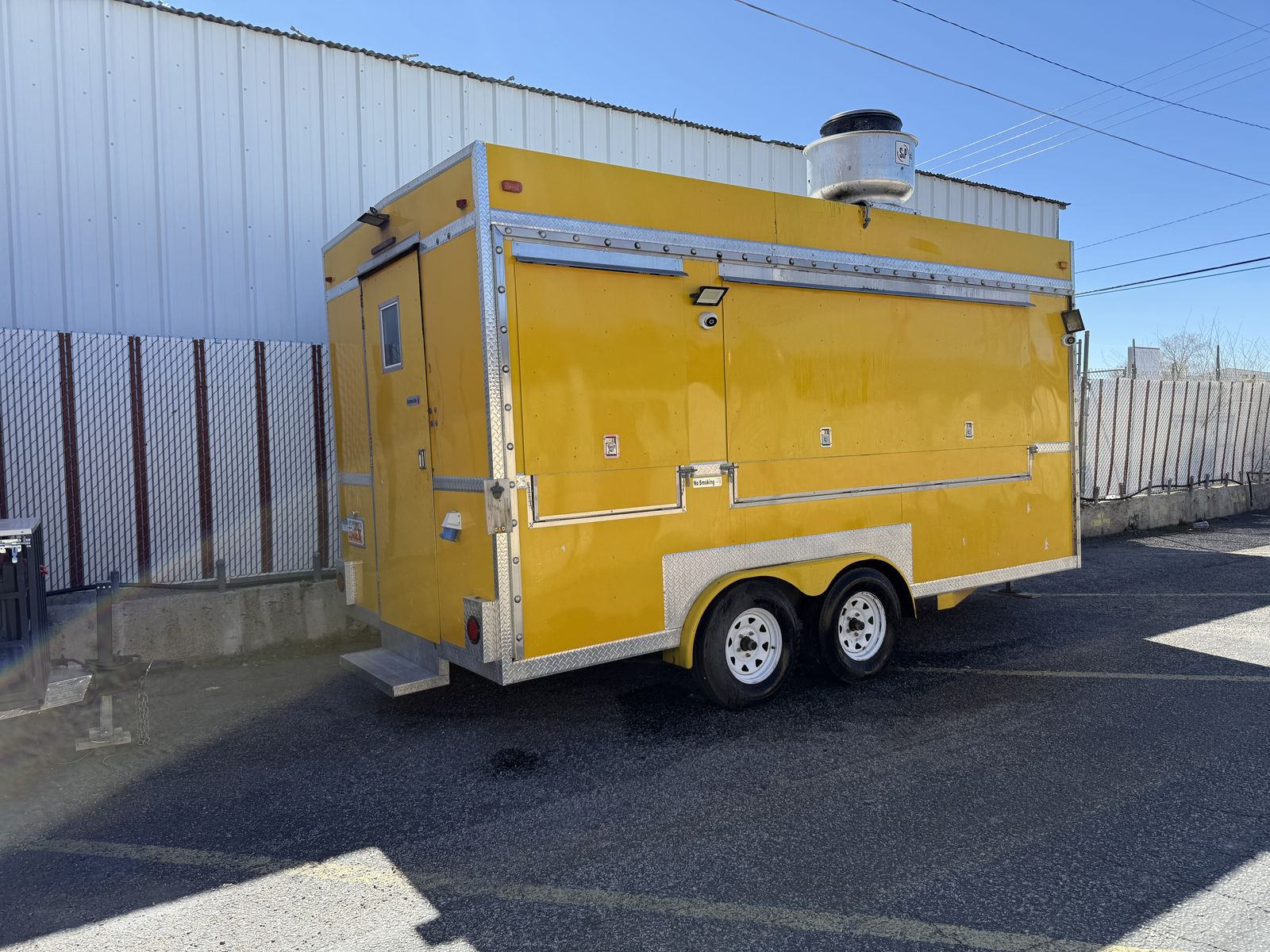 Bright yellow, eye-catching food trailer fully equipped and ready to operate immediately — perfect for tacos, burgers, BBQ, or any food concept!