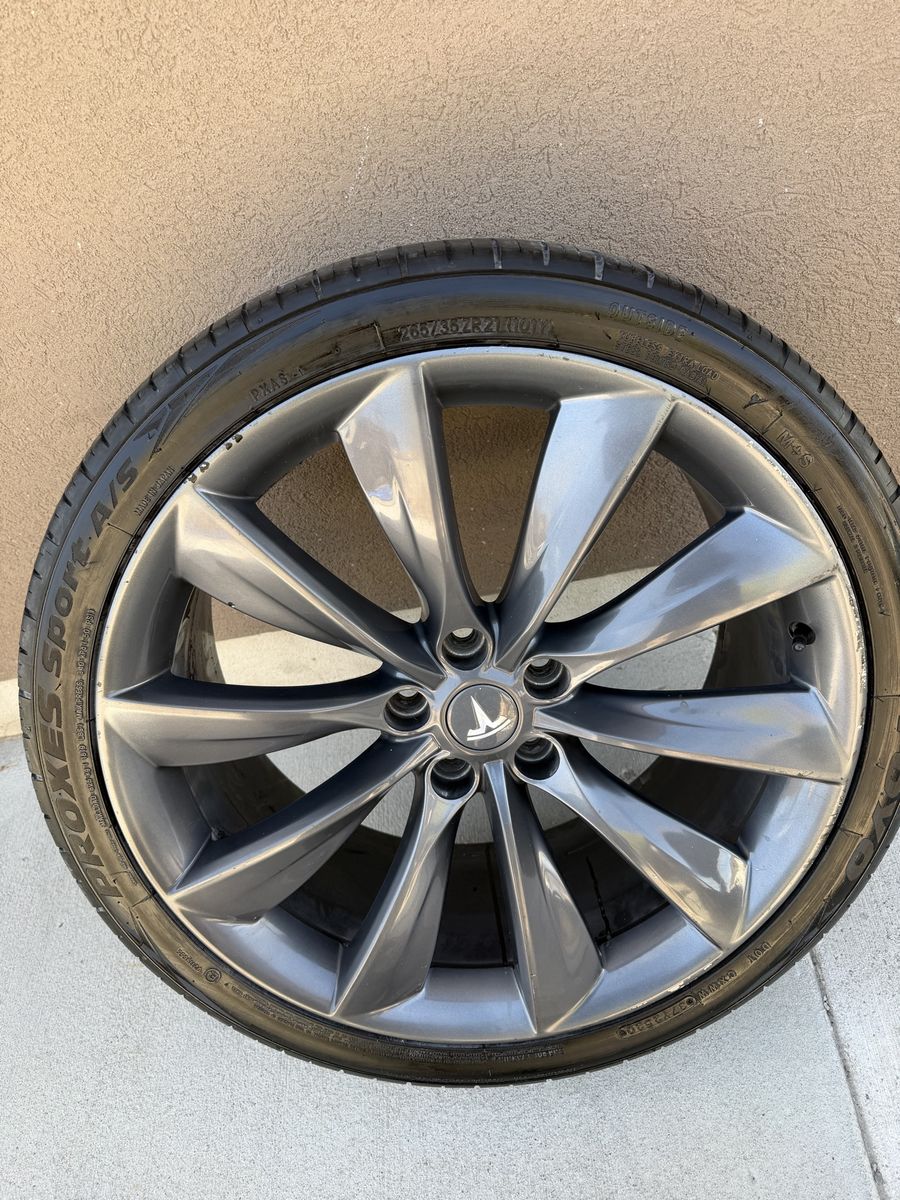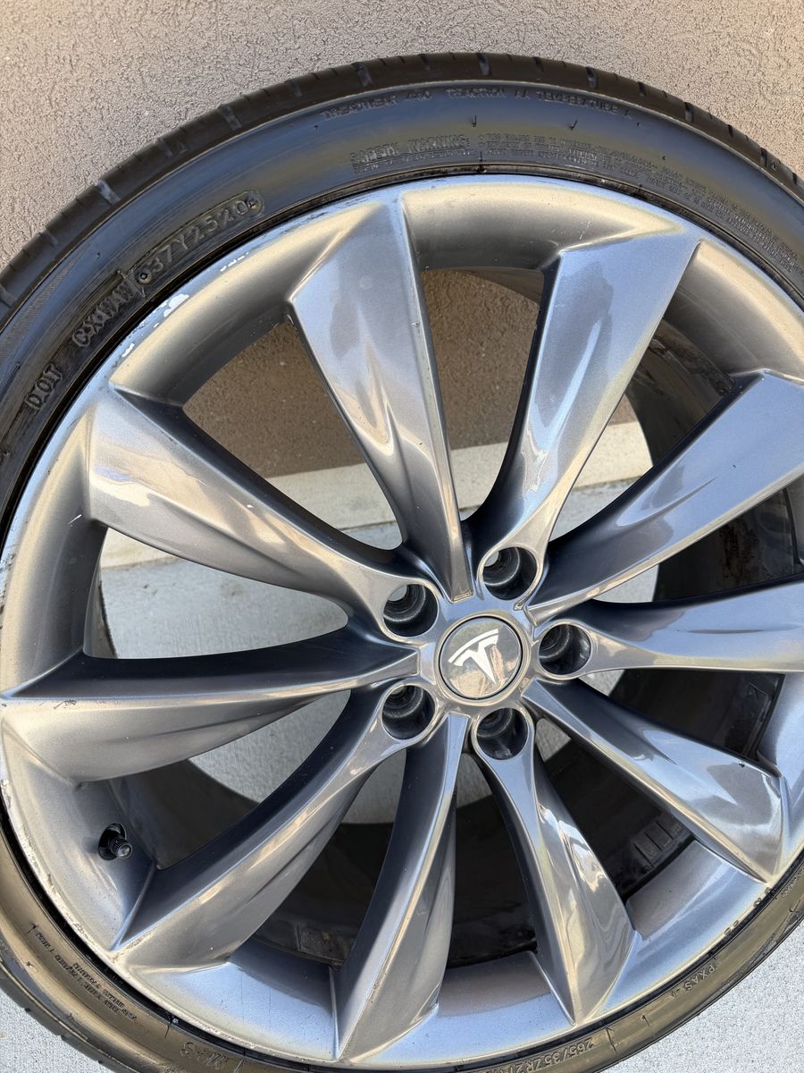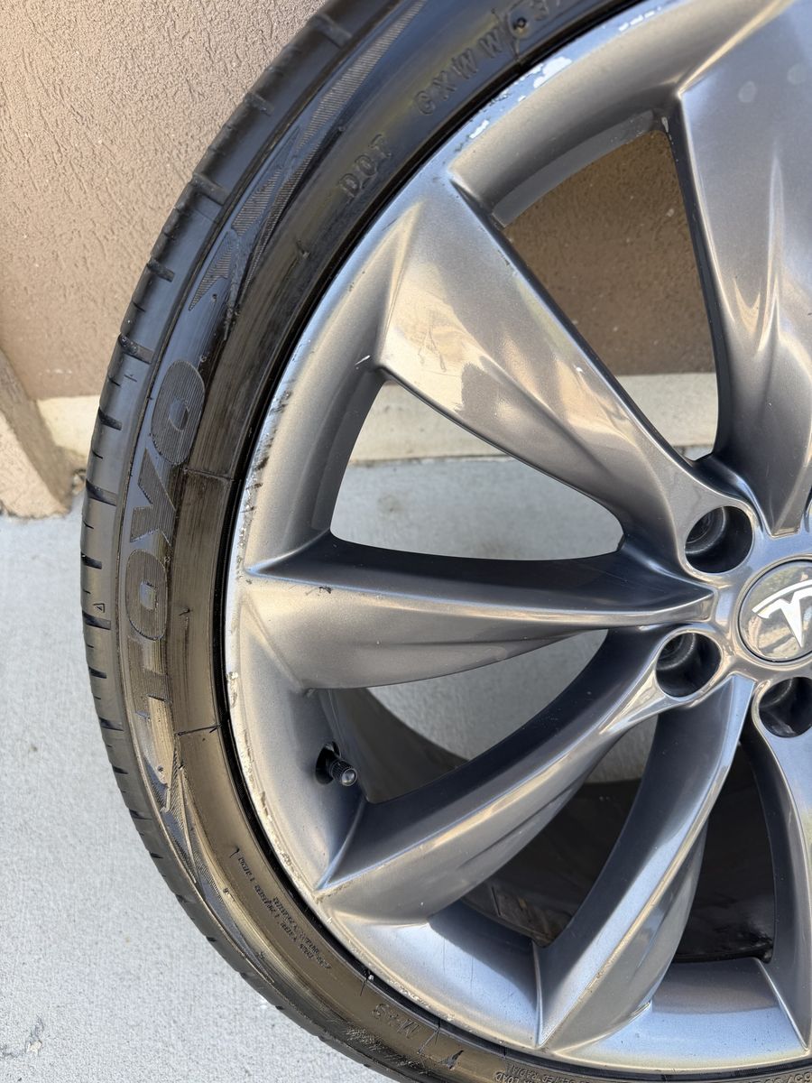 VenmoFor sale is one wheel & tire for a Tesla Model S. Rim is the 21x9 wheel that fits on the rear of the 2012-2021 Model S. The newer 2022-2026 model s could run this on the front or rear. Tire is 265/35r21 Toyo proxes with not much tread left. I kept this as a spare for my Model S, but I have switched sizes and no longer need it. Just has a regular rubber valve stem no TPMs sensor. This would great to keep as a back up or spare.