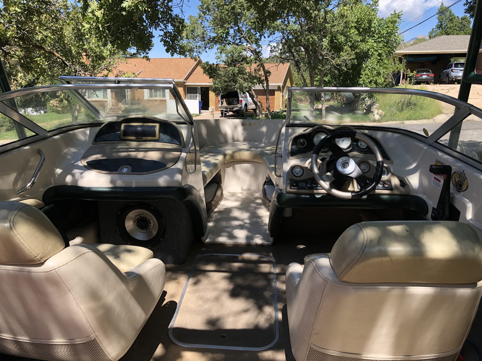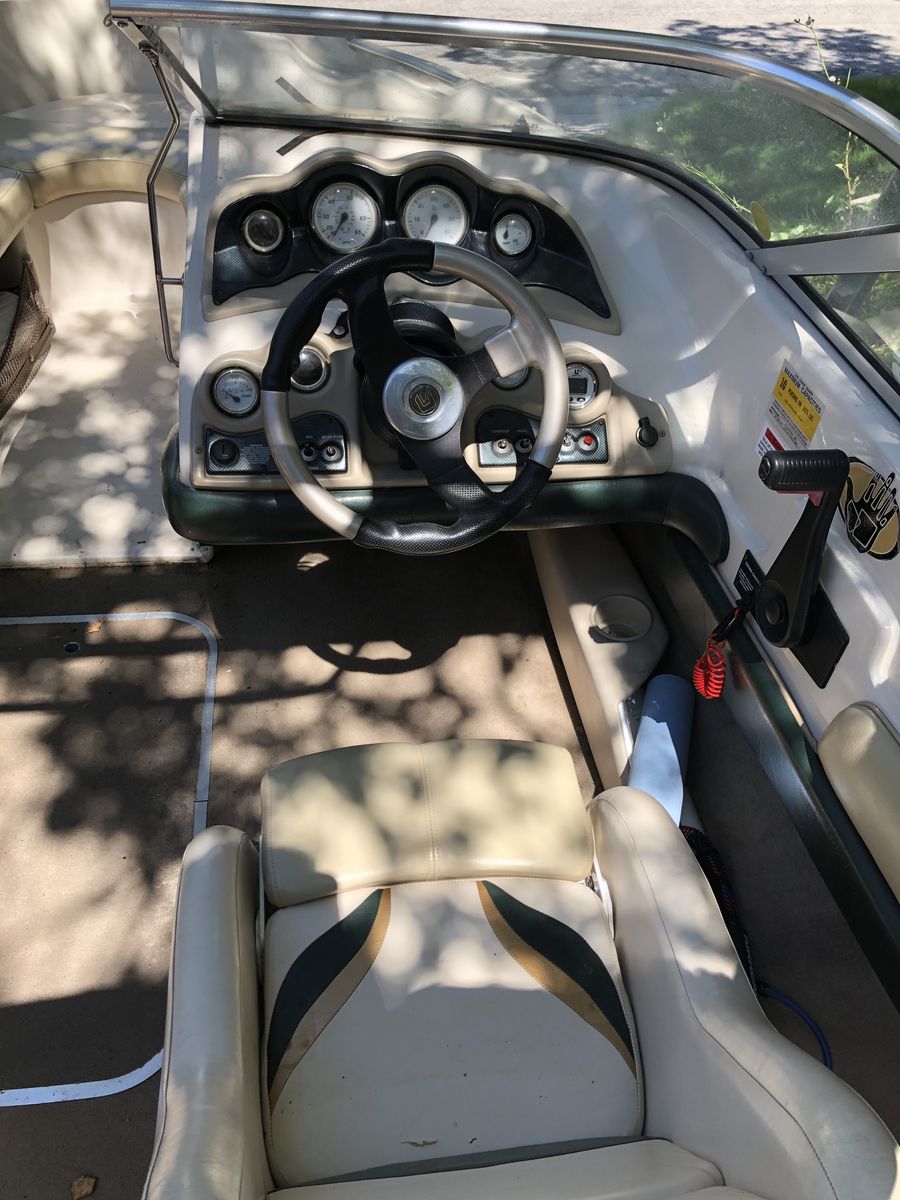 Included: Trailer, Bimini top, boat cover, stereo system, wakeboard, tube, tow ropes, life jackets