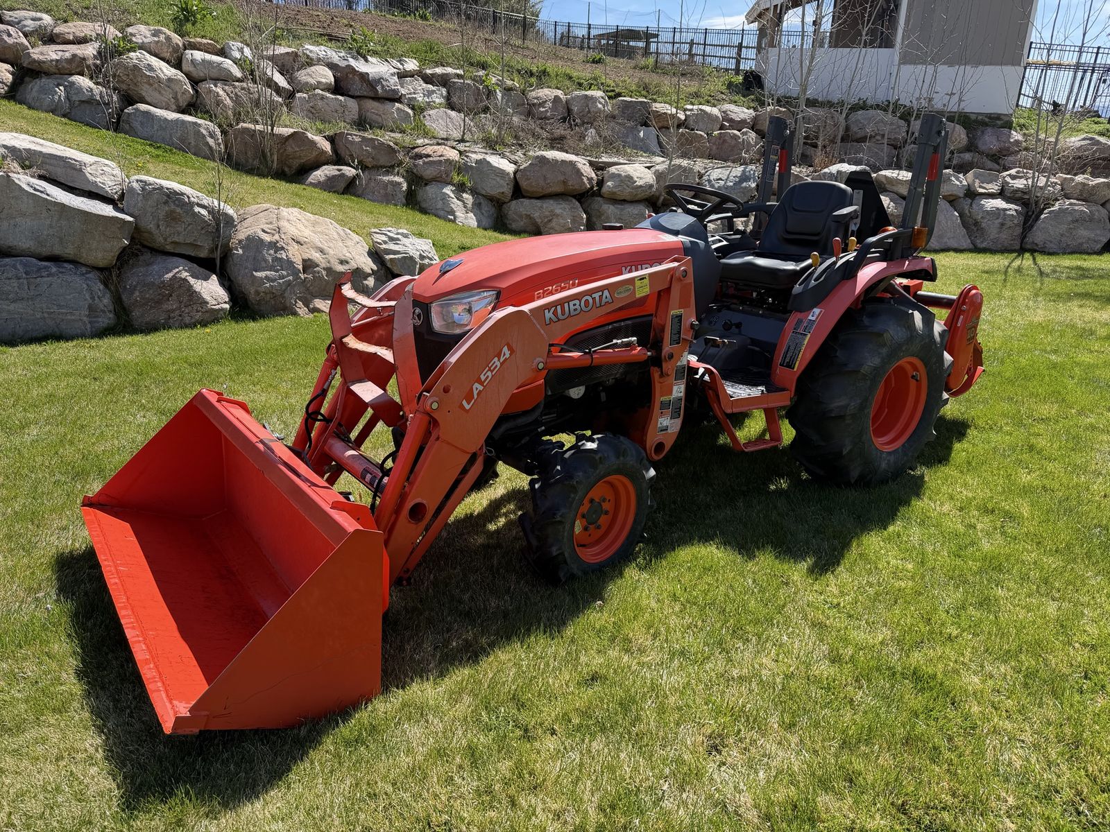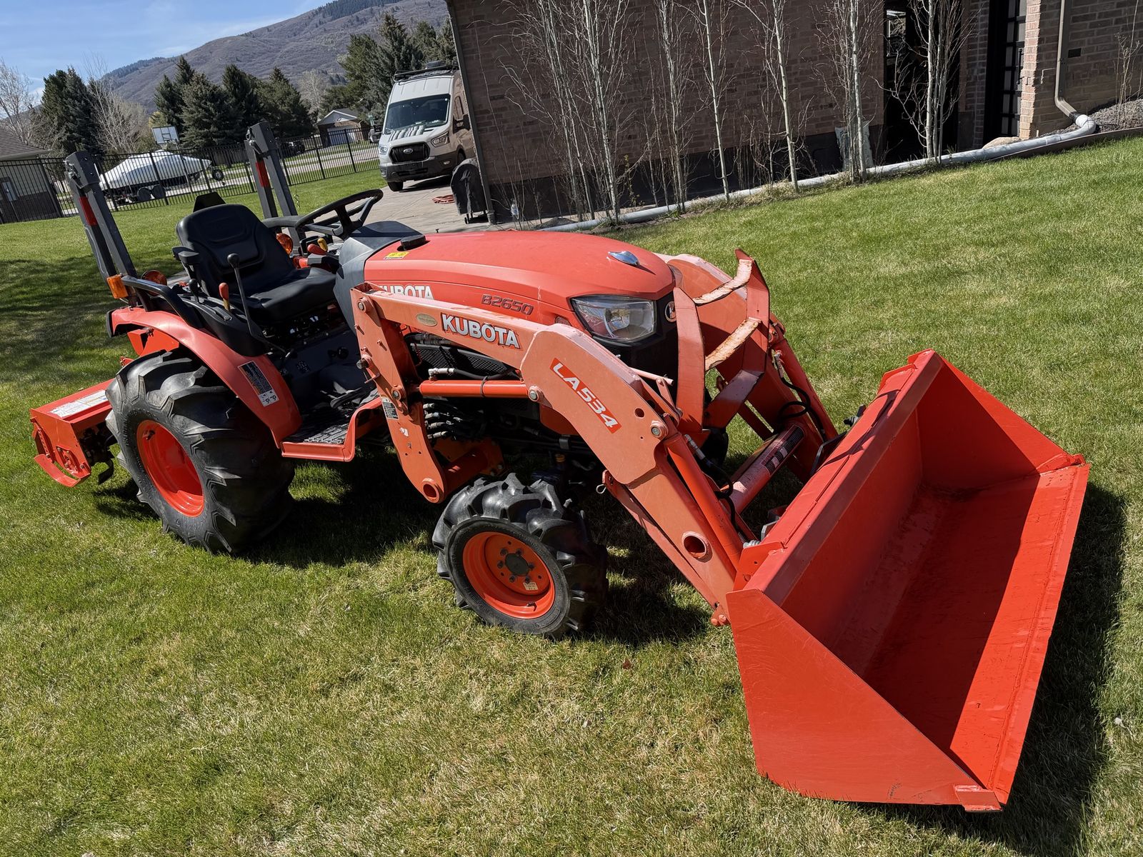VenmoKubota B2650 tractor. Doesnt use DEF. Loader arm installed used off a different tractor. Ask price is for tractor and loader arm only. Rototiller and box scraper available separately. Routine maintenance. Fresh oil change. Nothing leaks. Hydraulics hold great. 627 hrs. 4wd. Hydrostatic transmission. Full tank of diesel may be worth $100 by the end of the week! Extra options are Land Pride RTA 1242 Rototiller. Used about 10hrs. $2k. Land Pride BB1260 Box Scraper $500
