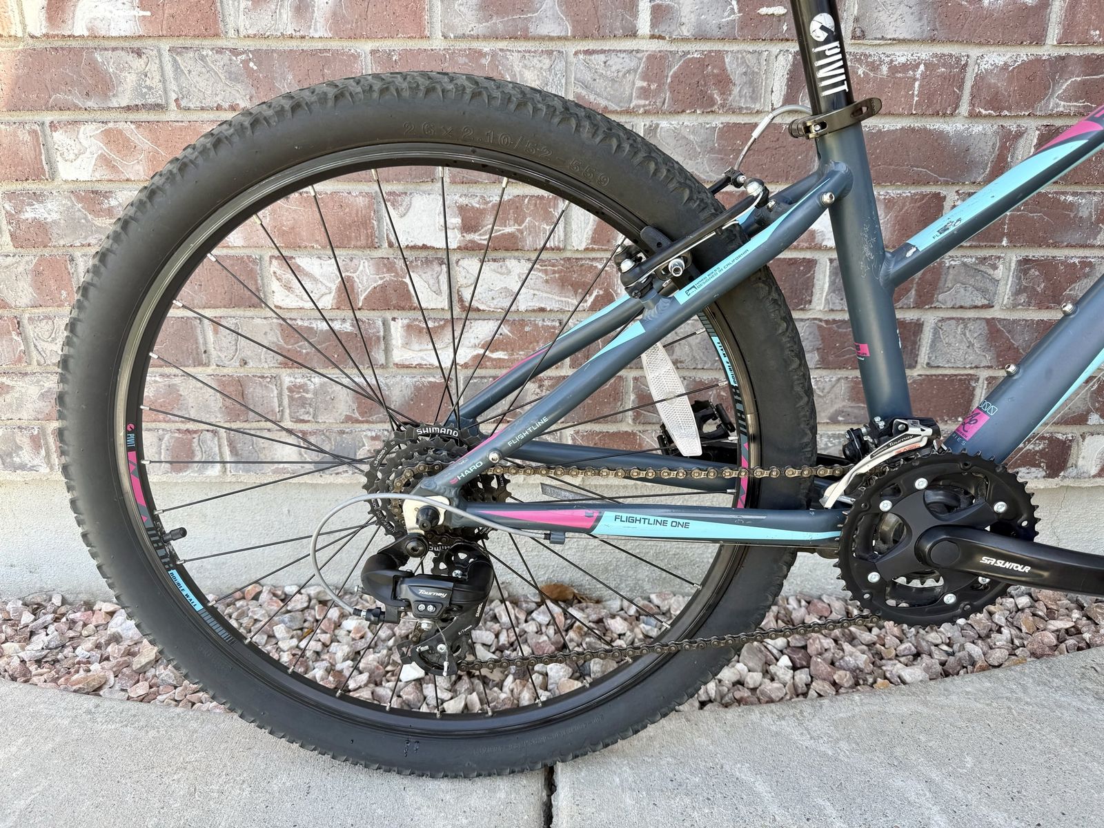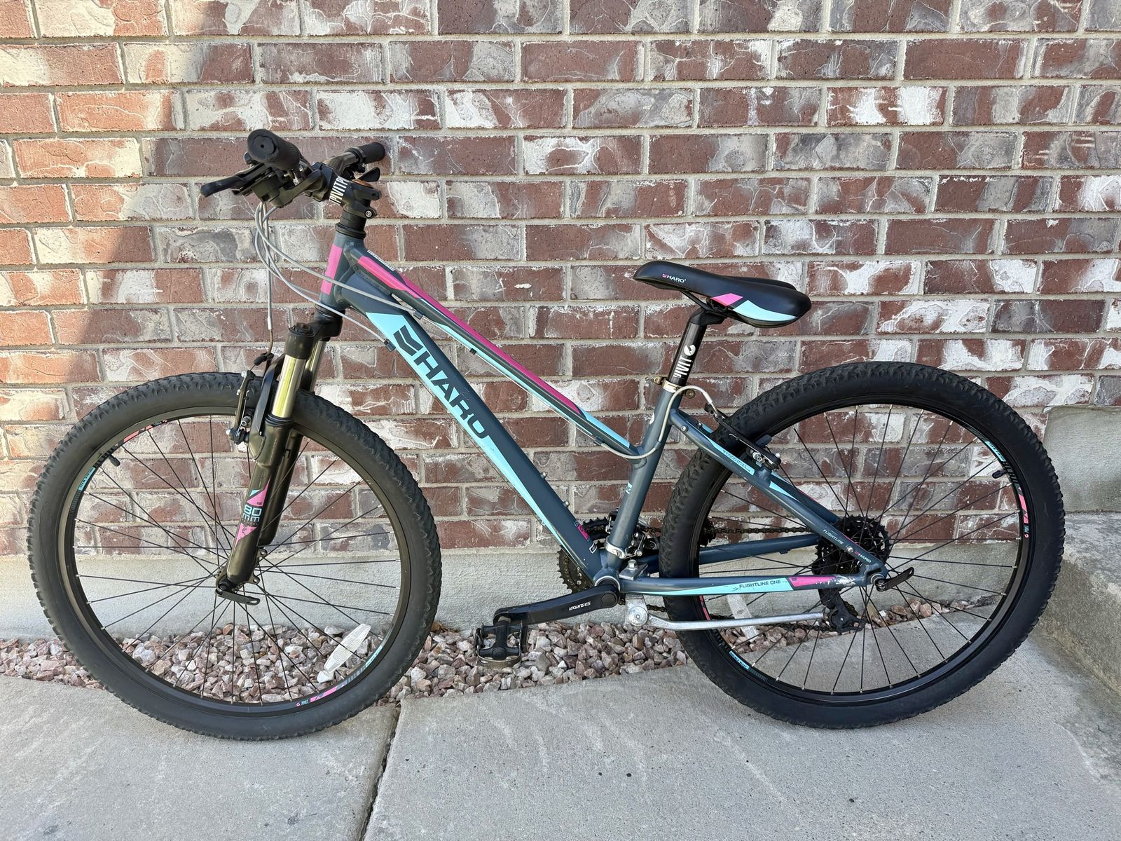 Like new condition. 2016 year. 14“ extra small frame. 26” wheels. 21 speeds(3x7). Super cute gray, teal and pink colors!