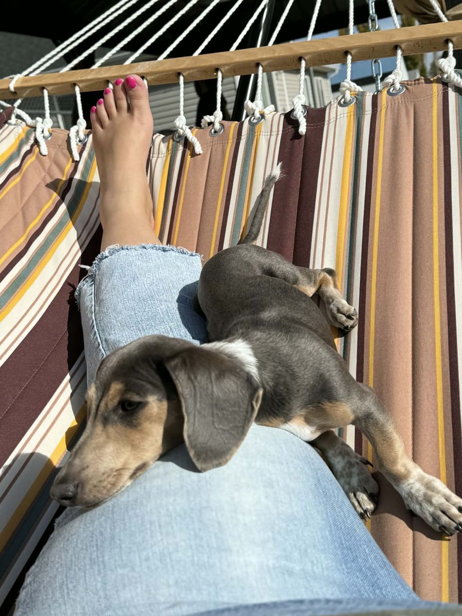 Venmo“Creamer” or “donut” my kids call him both. Is available at no fault of his own. He was the POL first sold and buyers ended up not being able to take him. He is a very sweet boy. He loves all humans and all dogs. He’s great for baths, nail trims, car rides, and a good couch nap. He sleeps in a crate and uses sawdust litter pellets for potty or outside. He is English cream making him the most beautiful cream color without any black flecks in his hair. He has his first shots, dewormed, fully vet checked. He is 8 weeks old. He comes from healthy parents who have great behavior and personalities. We are a small breeder who only has 1-2 litters per year. We are not a large scale breeder who breeds for quick turn over and profit. We put a lot of thought and love into our litters and our dogs are our family! Dad is 8 pound blue and cream and mom is 11 pound brindle piebald. I would assume he’s going to be closer to mom’s size when full grown. Please text or call with any questions! He is ready now!