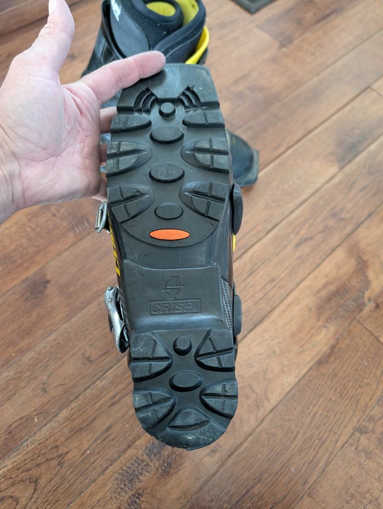 Crispy XP Telemark boot, Yellow and black, intuition liner. Used maybe eight times.