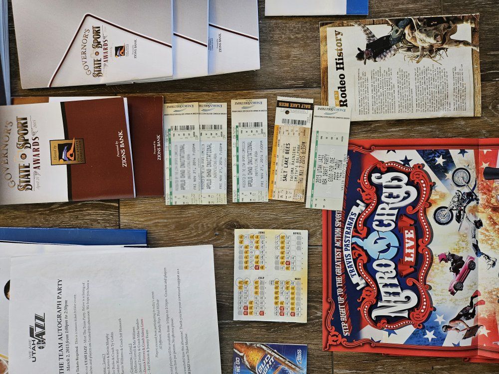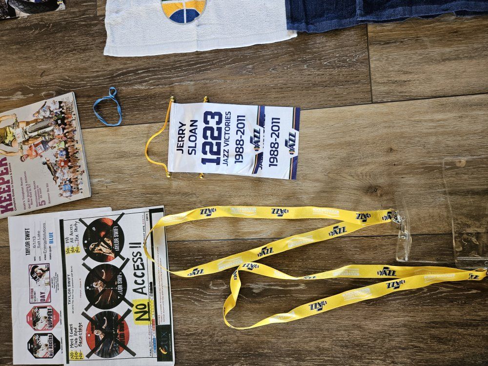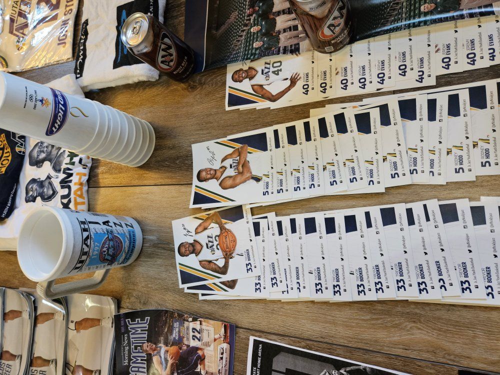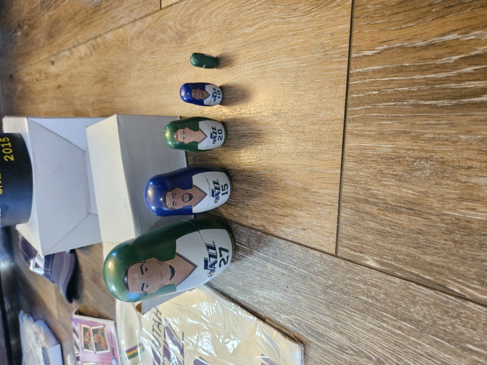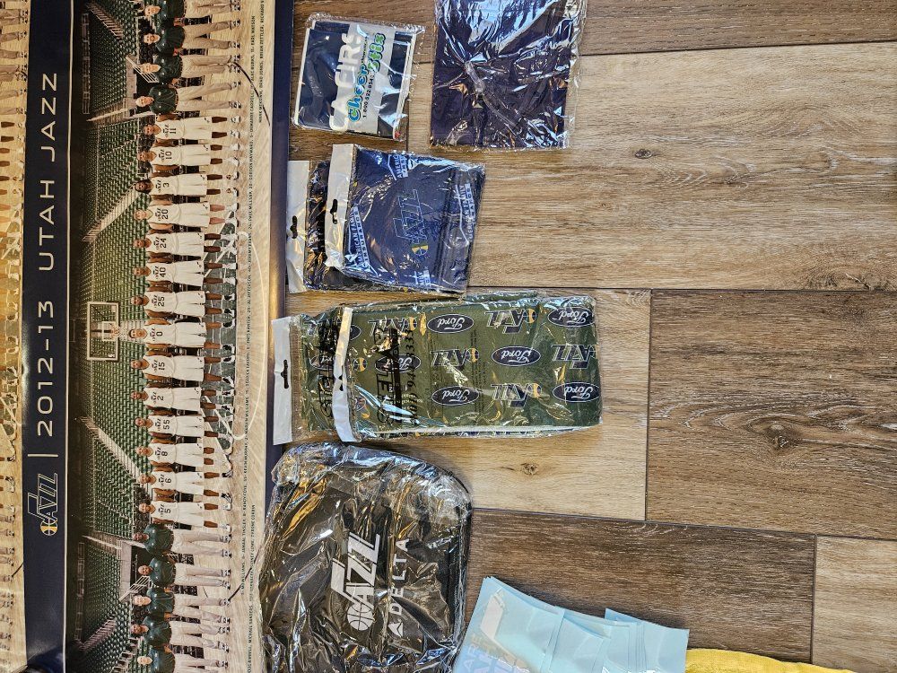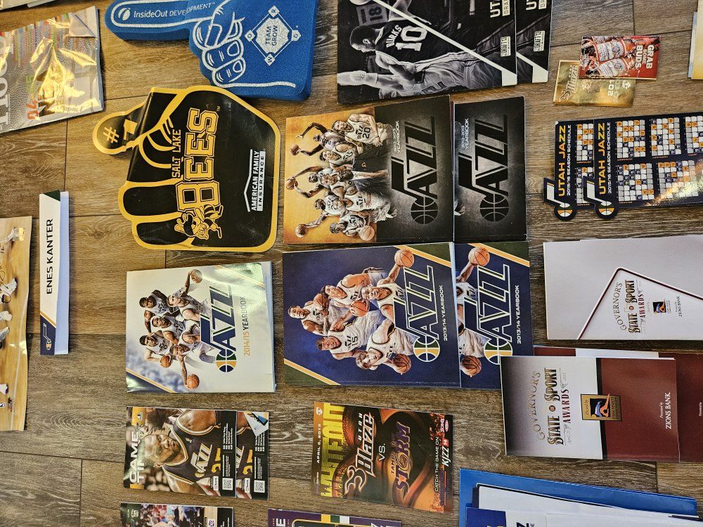 I had a collection of Jazz stuff given to me that I dont have space for. I'm hoping a fan or collector might want it. I will answer any questions I can. there are a lot of programs, towels, shirts, hats, collectibles (nesting doll, piggy bank, picture frames, posters, and some stuff that is sealed up). what you see is what you have. It must all go together though. The John Stockton poster looks like it was wet signed. the others look like the signatures were printed. thanks for looking.
