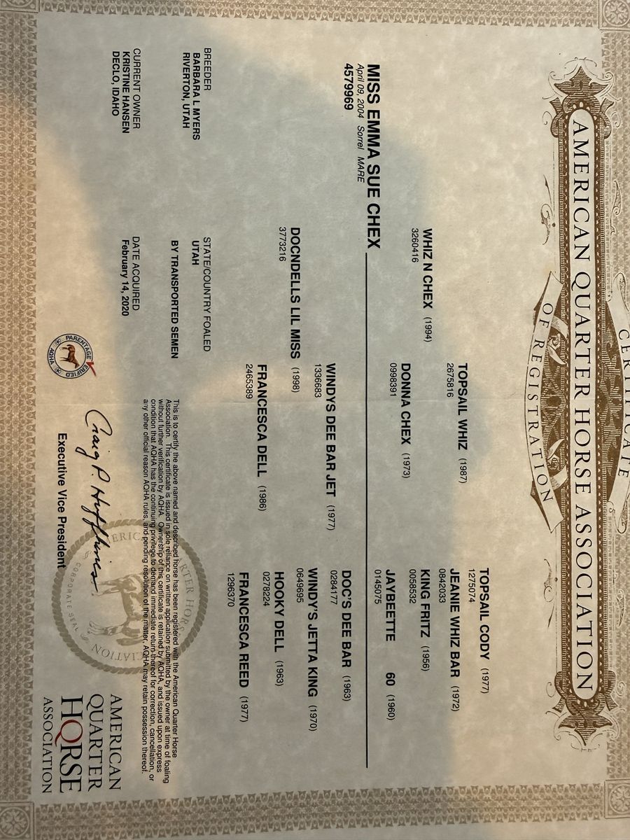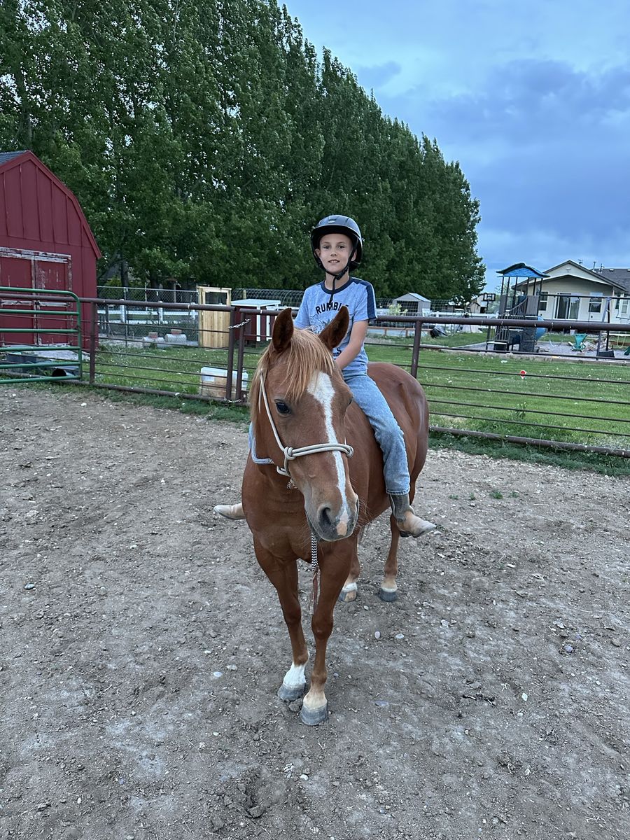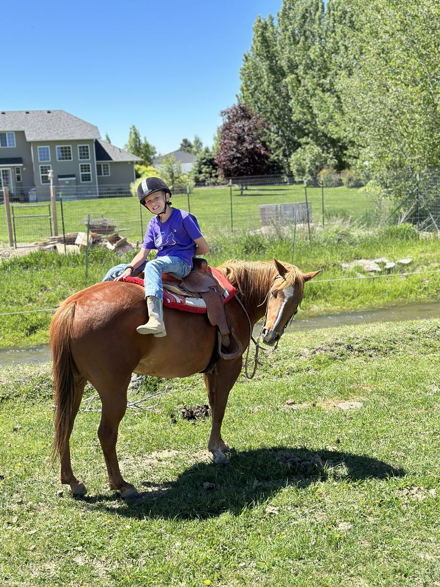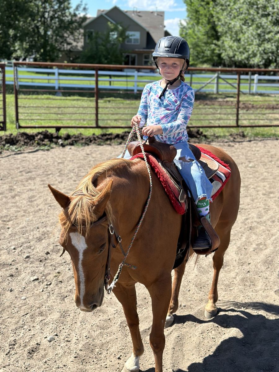 We used her in 4H, riding lessons, sorting cows, trail rides, English equitation, halter and more. Emma is quickly loved by anyone who rides her and is who we put our visitors and beginner riders on. She’s ready to teach another kid to love horses and riding. Neck reins, great stop, side steps, backs up…all the stuff you need.