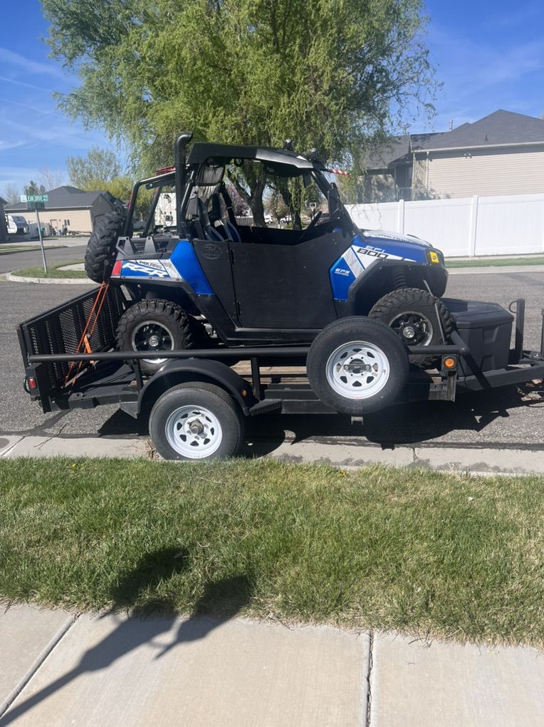VenmoPolaris Rzr and trailer combo. Looking to sell as a package deal. $7400.00 or $6400.00 for the RzR and a $1000 for the trailer. Machine has just under 3000 miles and 213 hrs of run time. Added a full safety glass windshield, solid Trail Armor doors and complete skid plate. Comes with two sets of wheels. Newer radials installed on one set and original bias trail tires on the second set. Original tires do not have much tread remaining. Street legal kit installed and works great. Viper wench installed and has never been used. Spare tire rack installed along with superatv trunk. Soft rear window installed (a must in keeping the dirt down) Also have a half window for the front in the event you do not prefer the full glass windshield. Trailer is a 2011 Bruton Easy pull, with 3500lb torsion easy lube axle with 2” hitch. Toes really easy and rides smooth. Tires have less than 1000 miles. Added utility box to tongue for storing your gear. This Does not have brakes, but all the lights work perfectly.