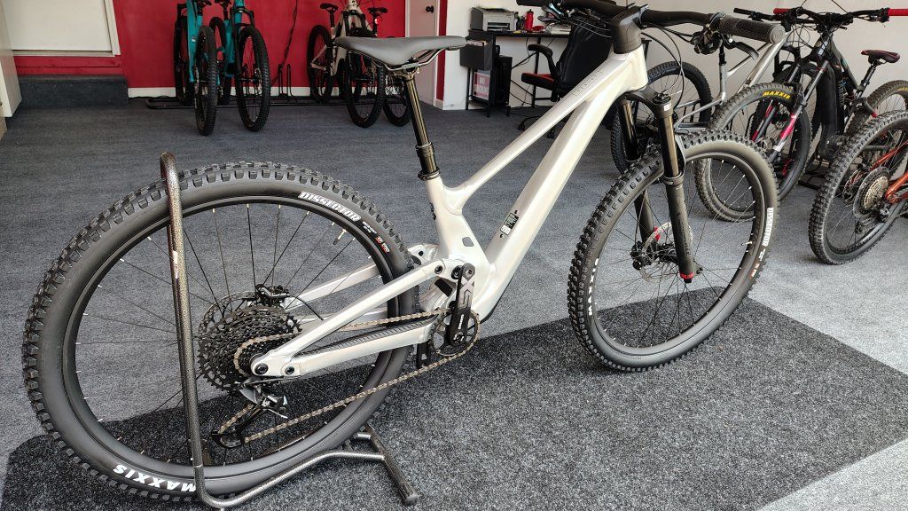 New bike...Scott Genius 940 is all mountain bike with 150mm travel in the front and rear Frame size-Small Recommended rider height 5'4" to 5' 8" Shimano 4 piston brakes Sram drivetrain Marzocchi/X-fusion suspension TwinLoc technology Integrated suspension technology 29 in. Tubeless ready maxxis tires Dropper post