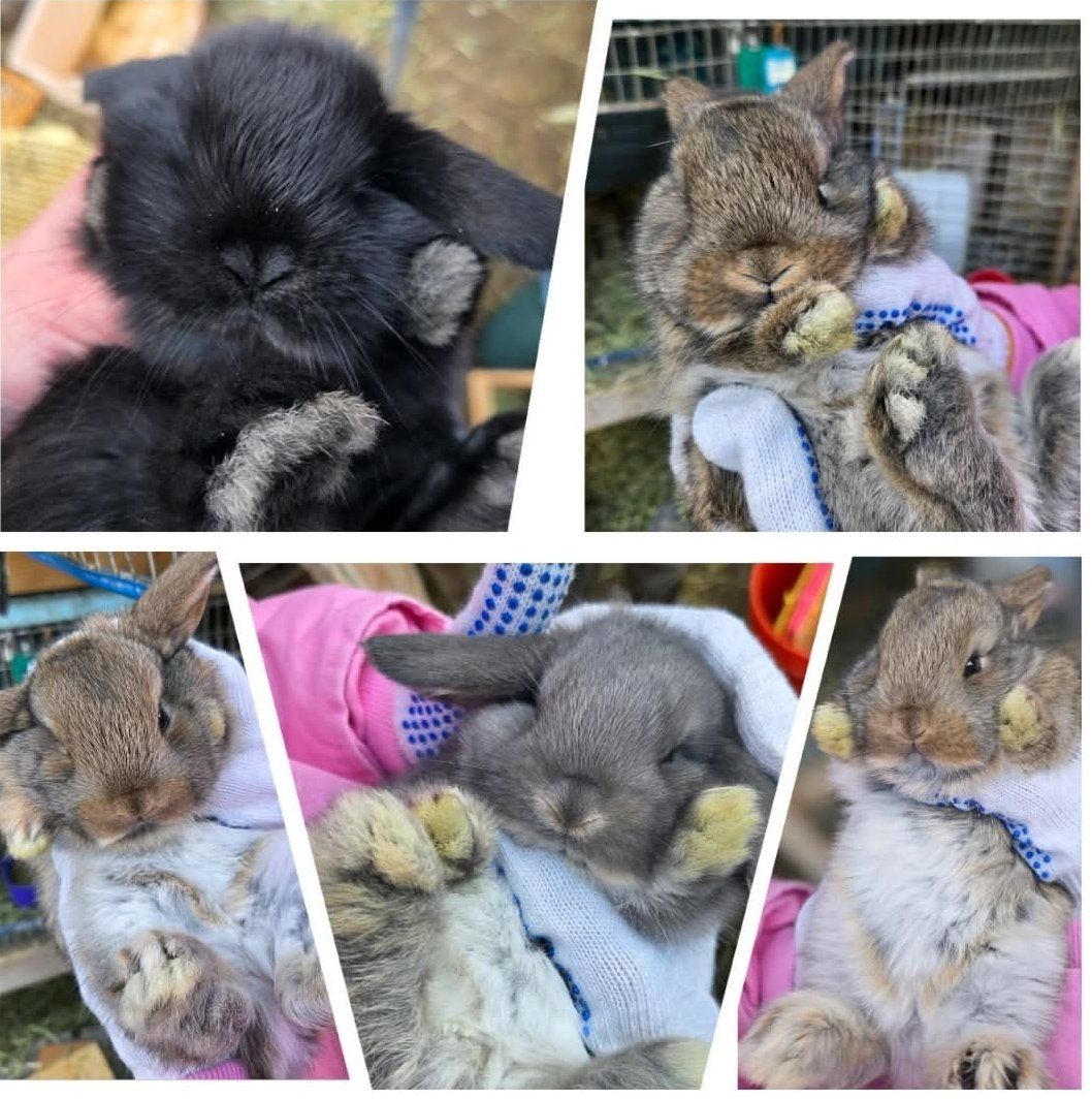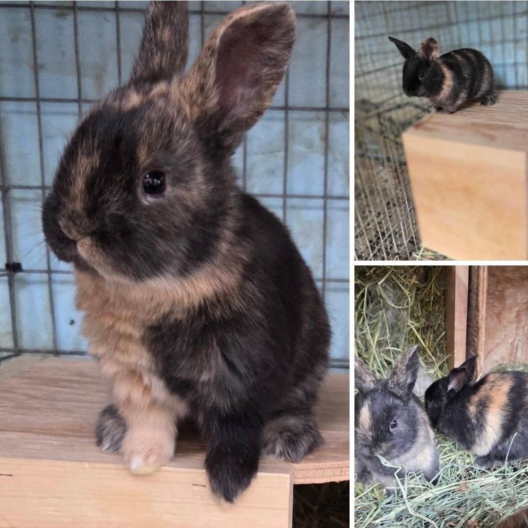 Breeds include Rhinelanders, Harlequins, Dutch, English Angora/Jersey woolly, Rex and Mini Lops.