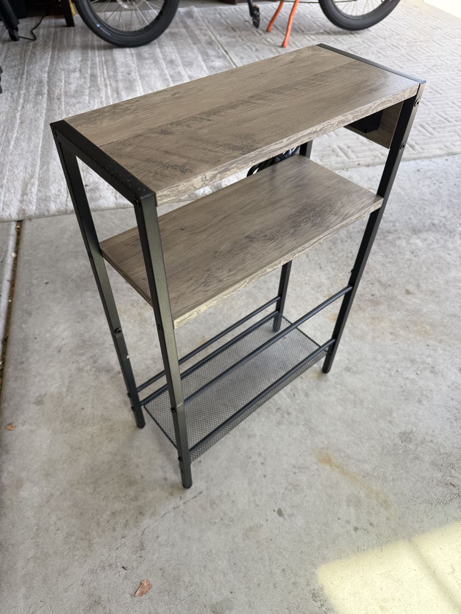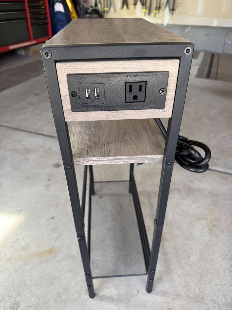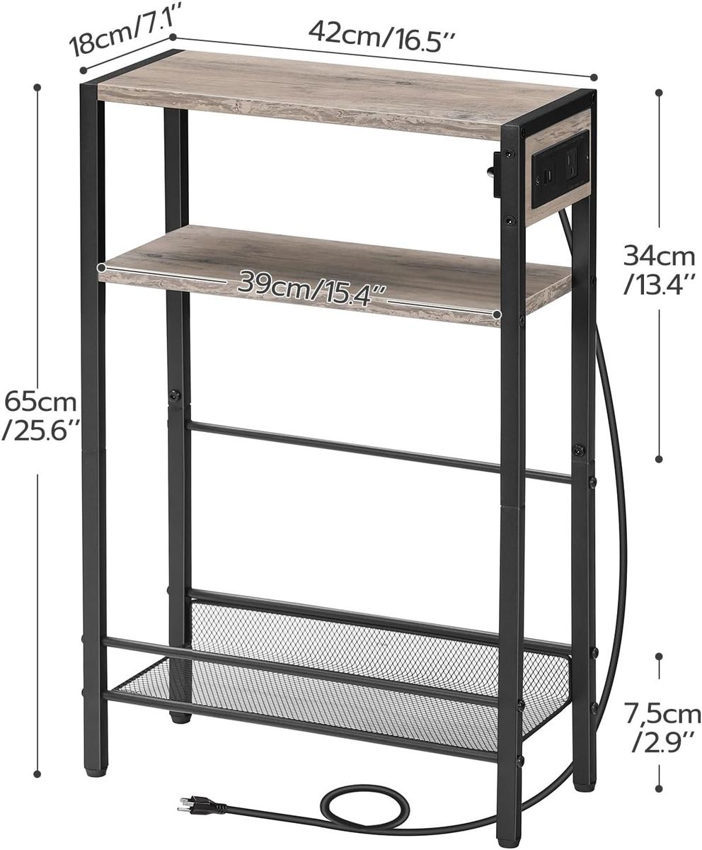 GooglePayNarrow Side Table with Charging Station, Skinny End Table for Small Spaces, Slim Nightstand with USB Ports Outlet, Sofa Beside Table with Storage Shelf, Greige and Black