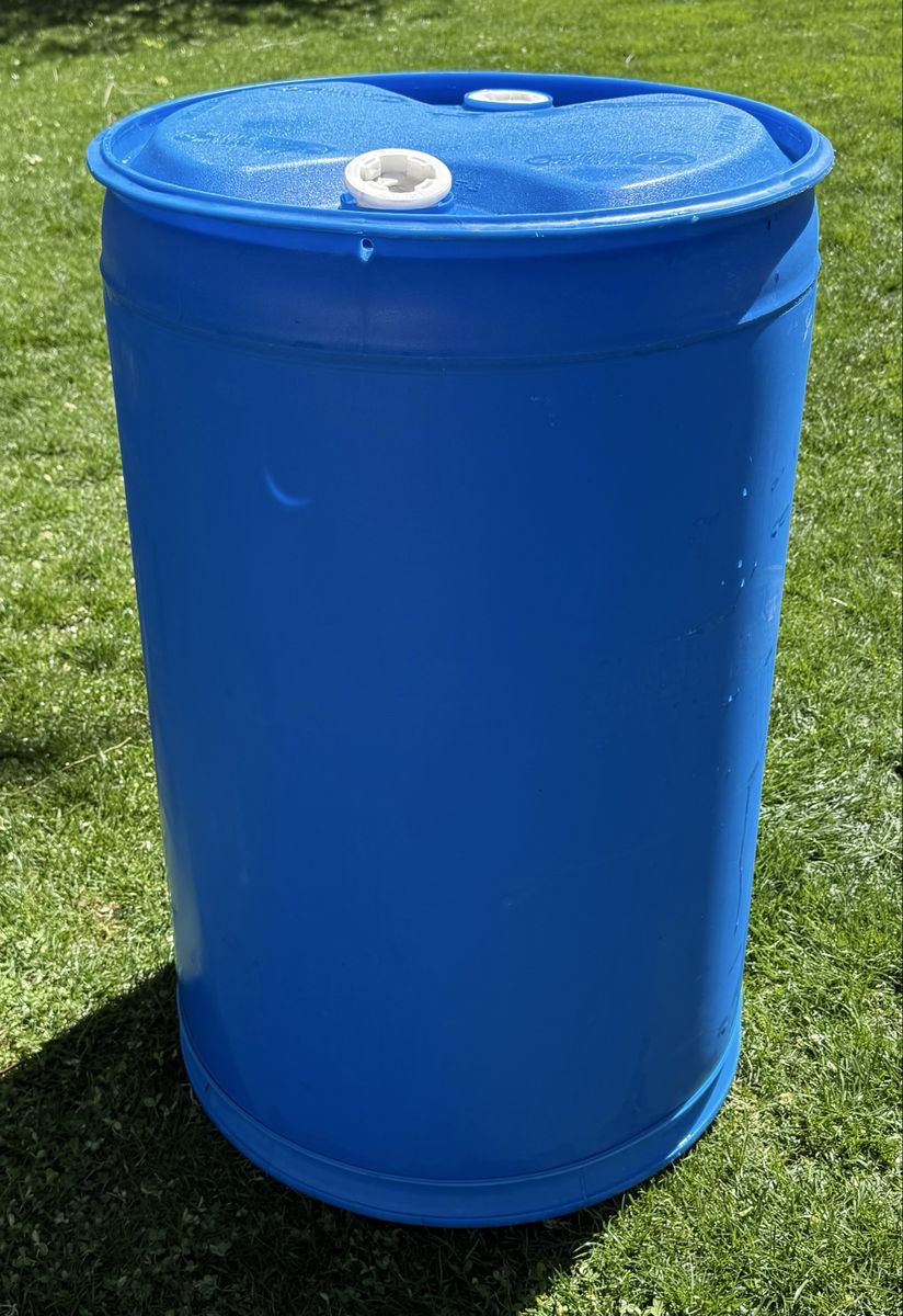 Zelle50 Gallon water/rain/fluid storage drum. Made of high grade plastic. Lightweight and durable Used to haul water to kids’ camp one time 10 years ago; has sat unused in shed ever since.