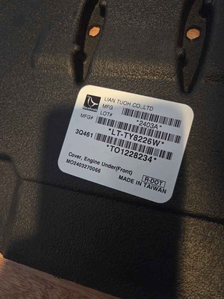 Venmolian tuoh # LT-TY8226W front engine splash shield under cover, platic PE, for toyota camry 2018-2024, HARDWARE IS NOT INCLUDED, new no box, $60, send me a message if you are interested I'm located in West Valley City