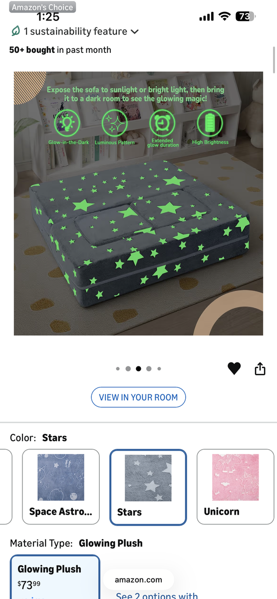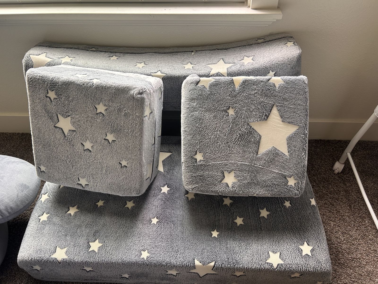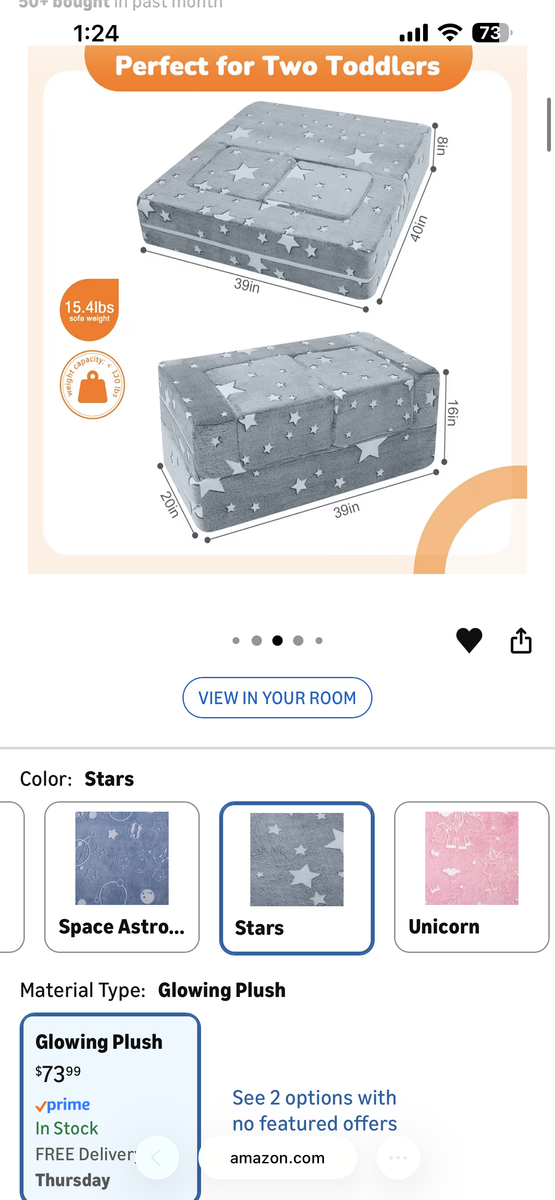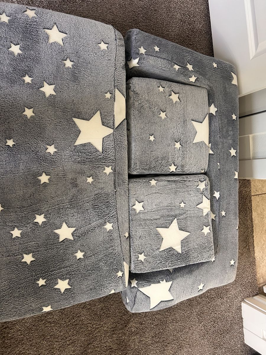 VenmoCreate the ultimate cozy and creative play space with this adorable modular kids play couch! Designed in a stylish grey fabric with fun glow-in-the-dark stars, this piece easily transforms from a comfy toddler sofa into a variety of play configurations—perfect for imaginative play, reading, lounging, or even nap time.