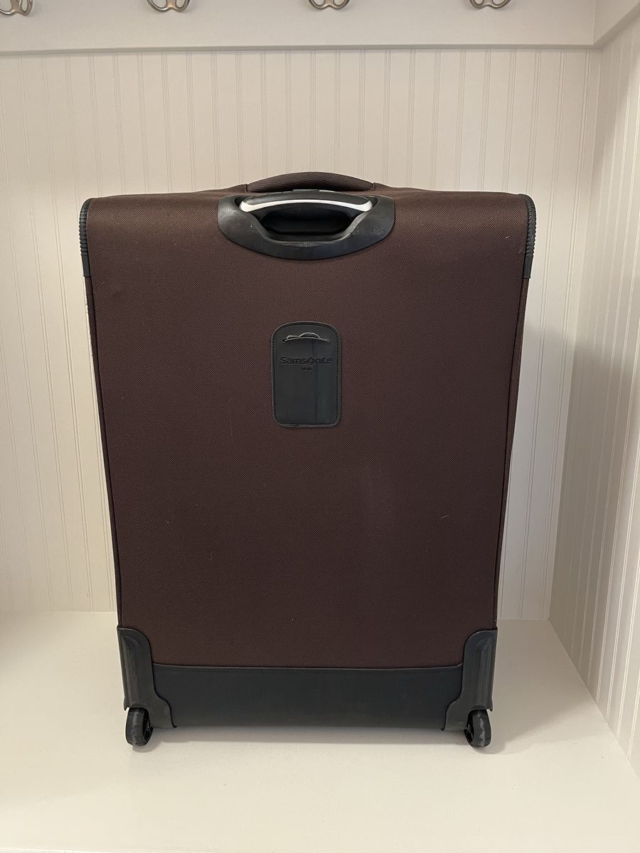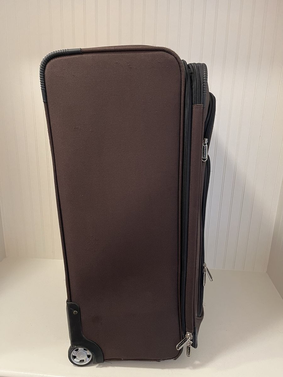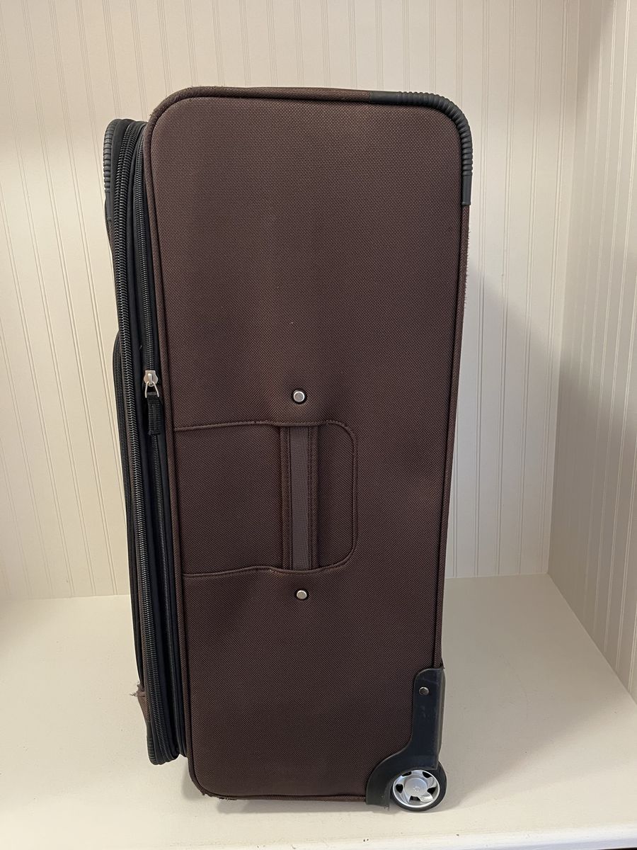 VenmoThis extra large suitcase measures 14" x 20" x 30". it is an expandable soft suitcase with 2 wheels. It is in excellent condition with no tears. All zippers work well and the handle goes in and out smoothly. There are 2 small areas where the fabric has been worn on the corners from normal use. (see pictures) The suitcase empty weighs 13.87 lbs.
