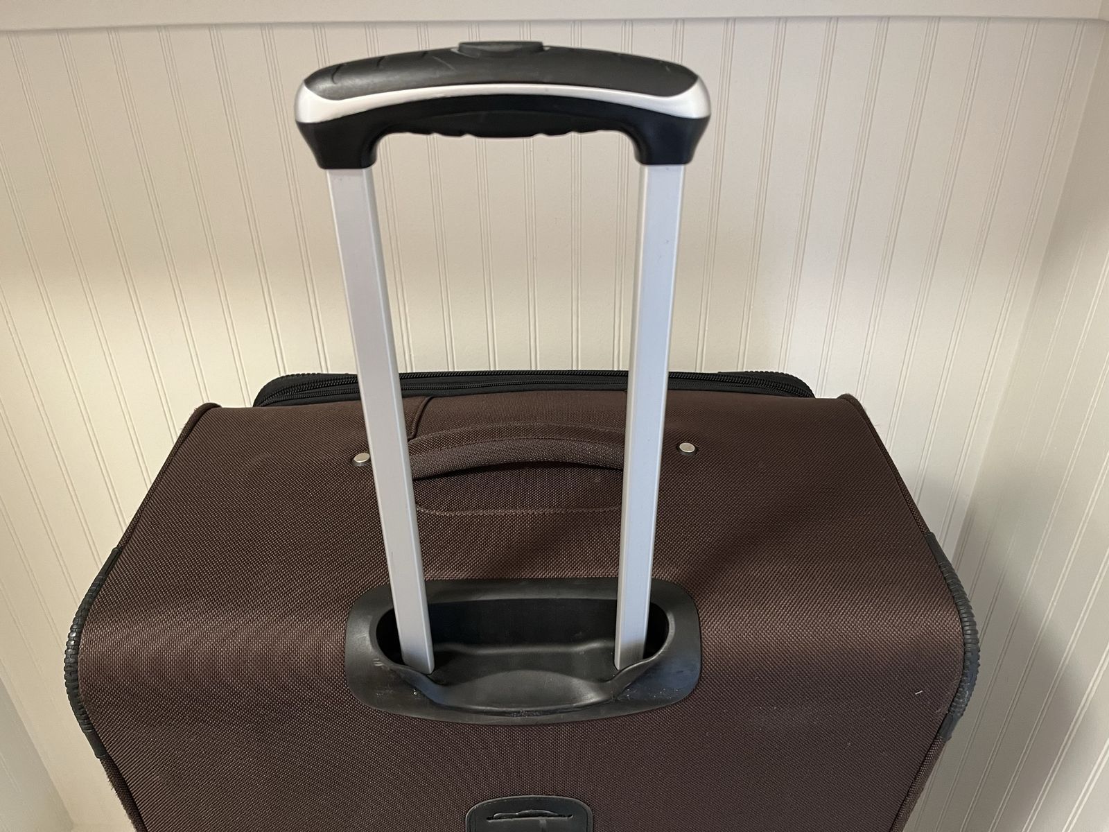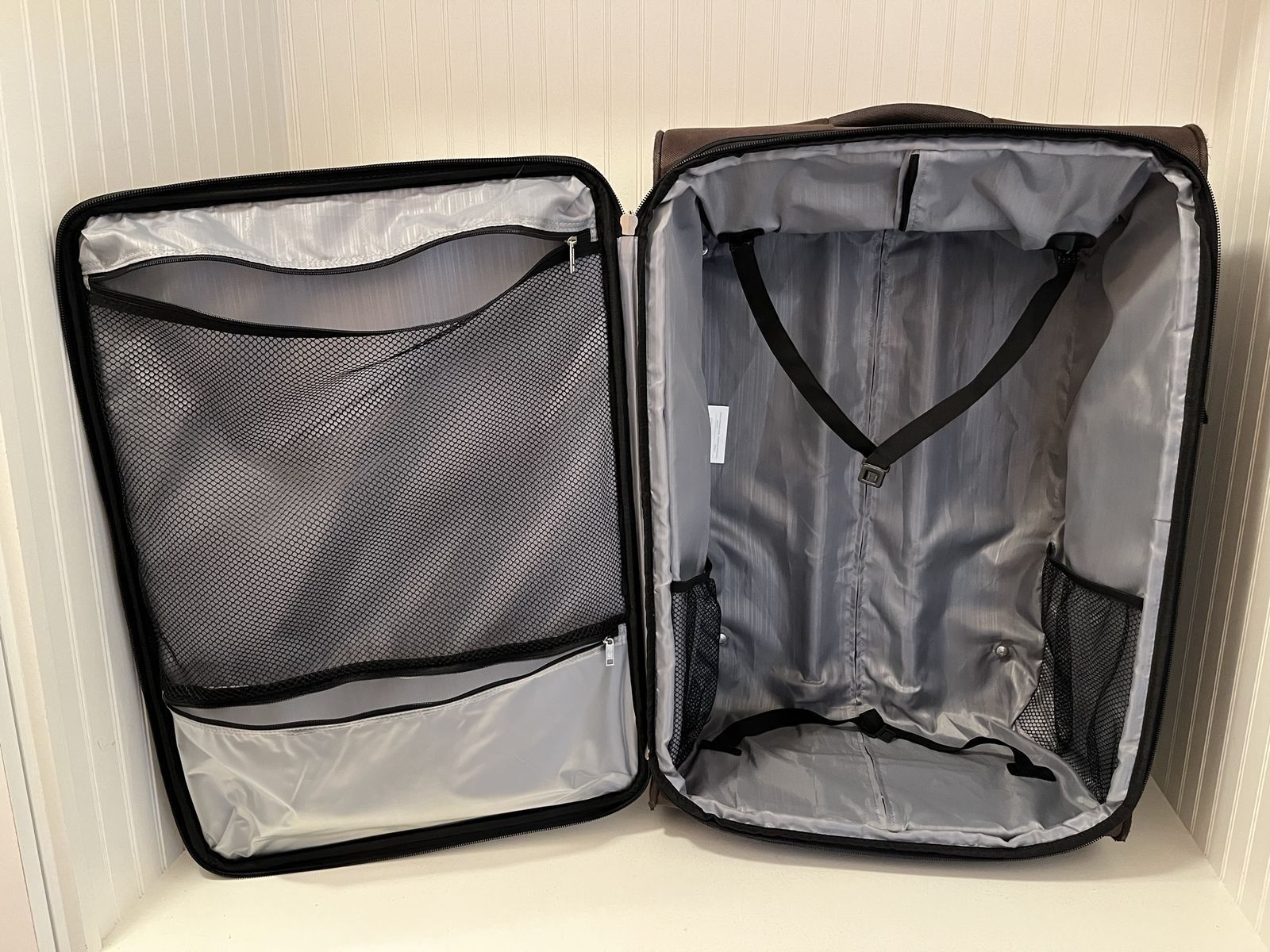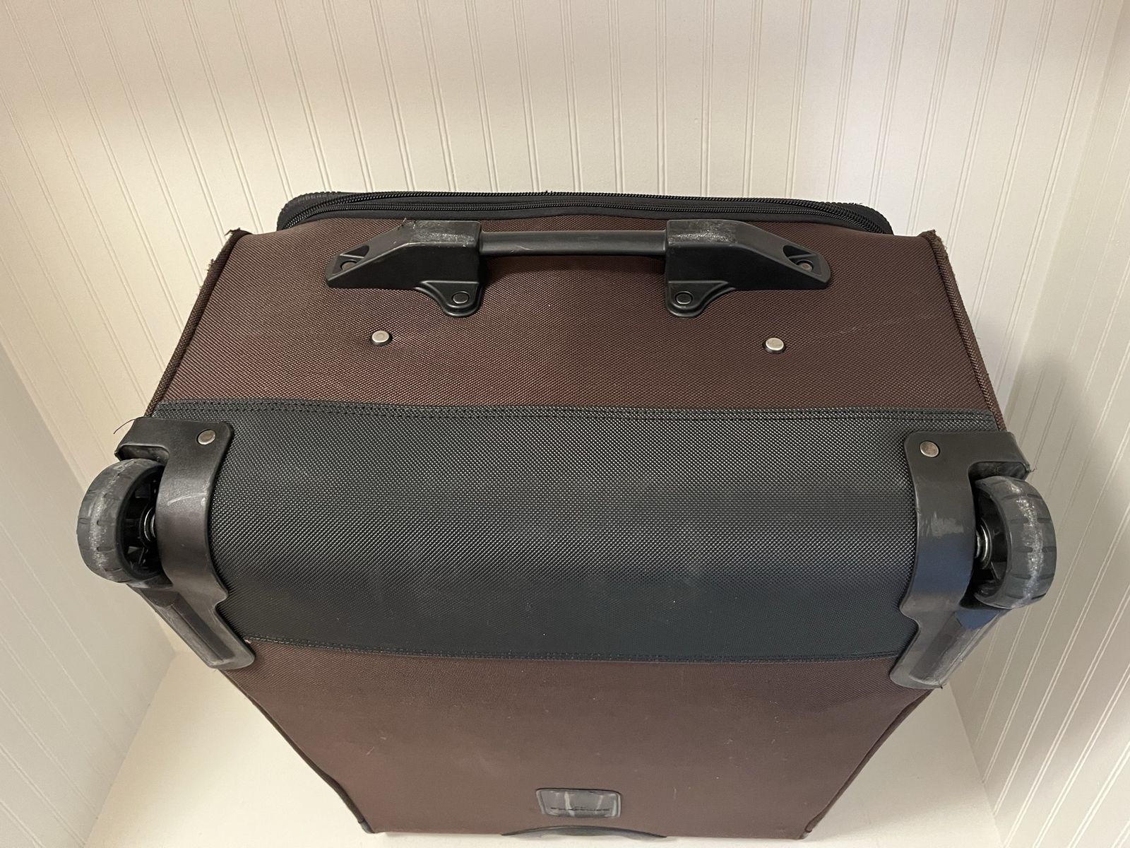 VenmoThis extra large suitcase measures 14" x 20" x 30". it is an expandable soft suitcase with 2 wheels. It is in excellent condition with no tears. All zippers work well and the handle goes in and out smoothly. There are 2 small areas where the fabric has been worn on the corners from normal use. (see pictures) The suitcase empty weighs 13.87 lbs.