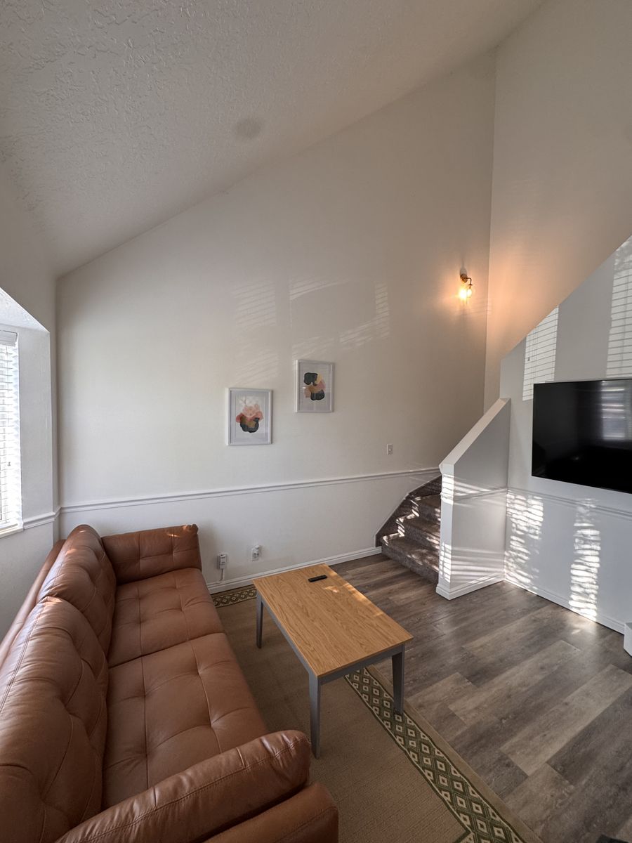 Perfect for students or anyone looking for an affordable place to live in Provo. This second floor condo is fully furnished with BRAND NEW beds and furniture and includes in-unit washer and dryer. Plentiful street parking with no permit required.