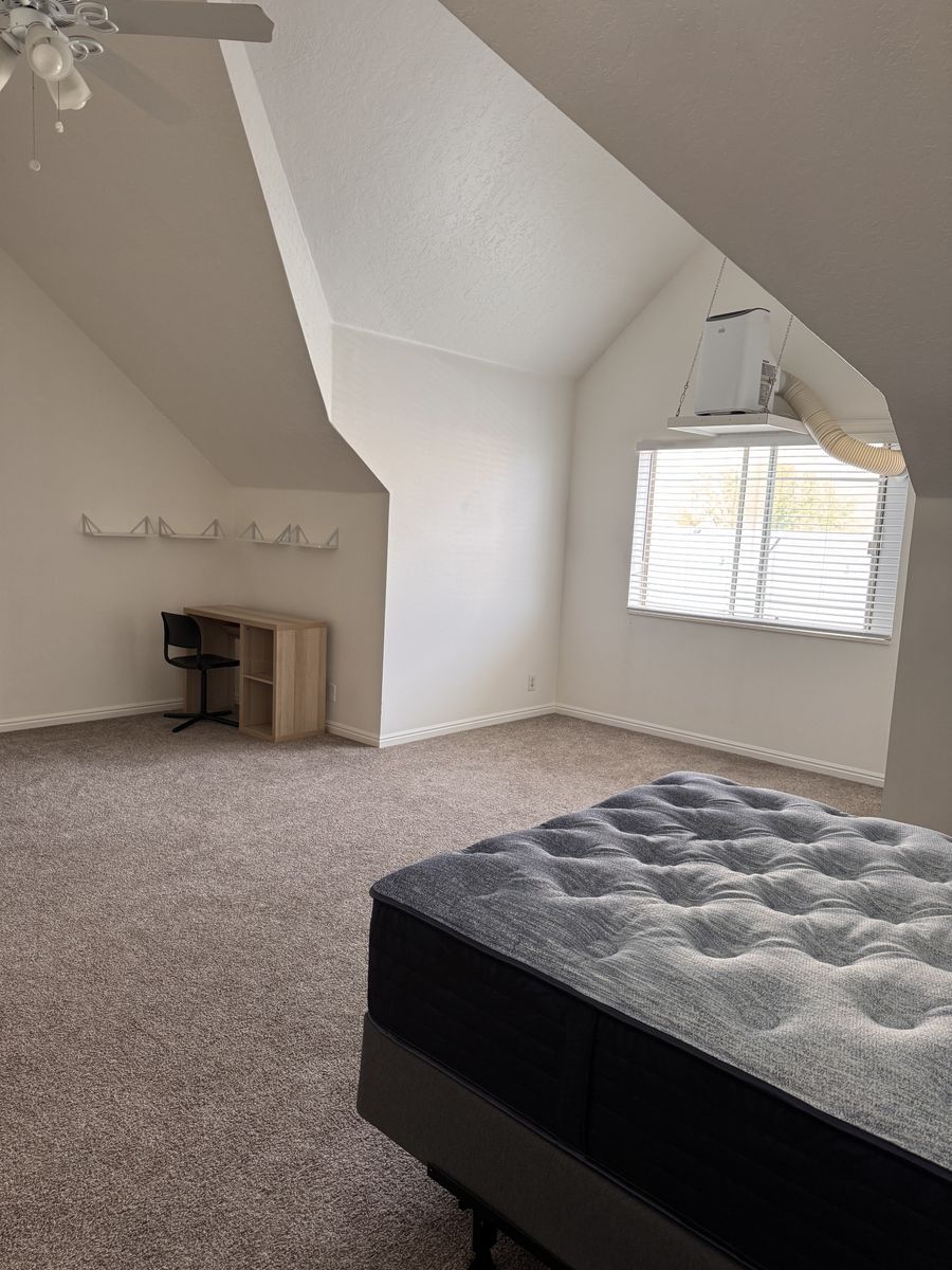 • Upstairs Large Loft Private Bedroom – $800/mo: Includes NEW FULL bed, new desk, and HUGE private loft living space. Shared bathroom.