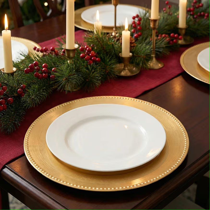 HIGH-QUALITY MATERIALS: This round gold charger plate is made of high-quality plastic painted metal texture with a coral reef design to add charm to your dining table. PRODUCT SIZE: Gold charger plates, measures 13 inches. These plates are perfect for placing under salad bowls, soup bowls, and main course plates to prevent accidental spillage and protect your table. WIDE APPLICATION: Multiple color choices can match your activities with different themes and styles. Suitable for formal dinners, weddings, events, parties, and other occasions. Enhance the decorative effect of the table layout and create an atmosphere. The charger plates can also be used as an ornament to decorate your home.