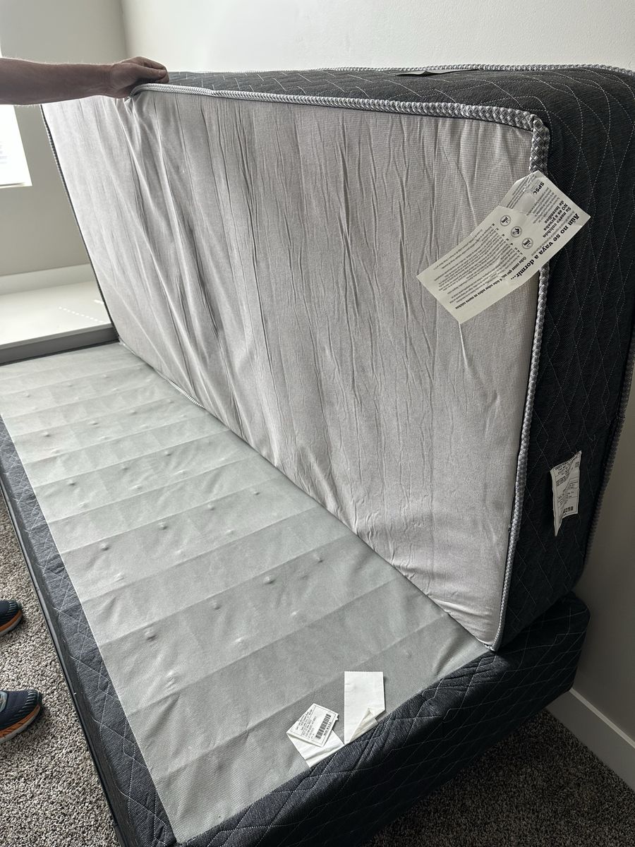 VenmoAston brand new mattress with Aston box spring and frame included. Never used. Longer length bed for taller people. Bed measures 6 ft 8 in X 3 ft 3 in.