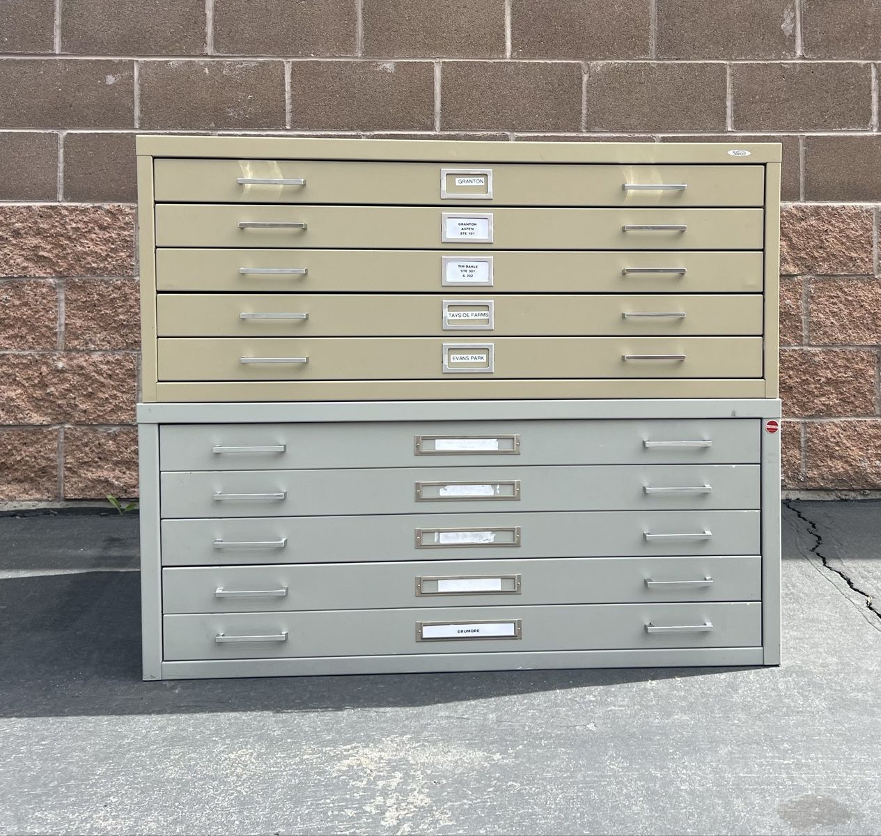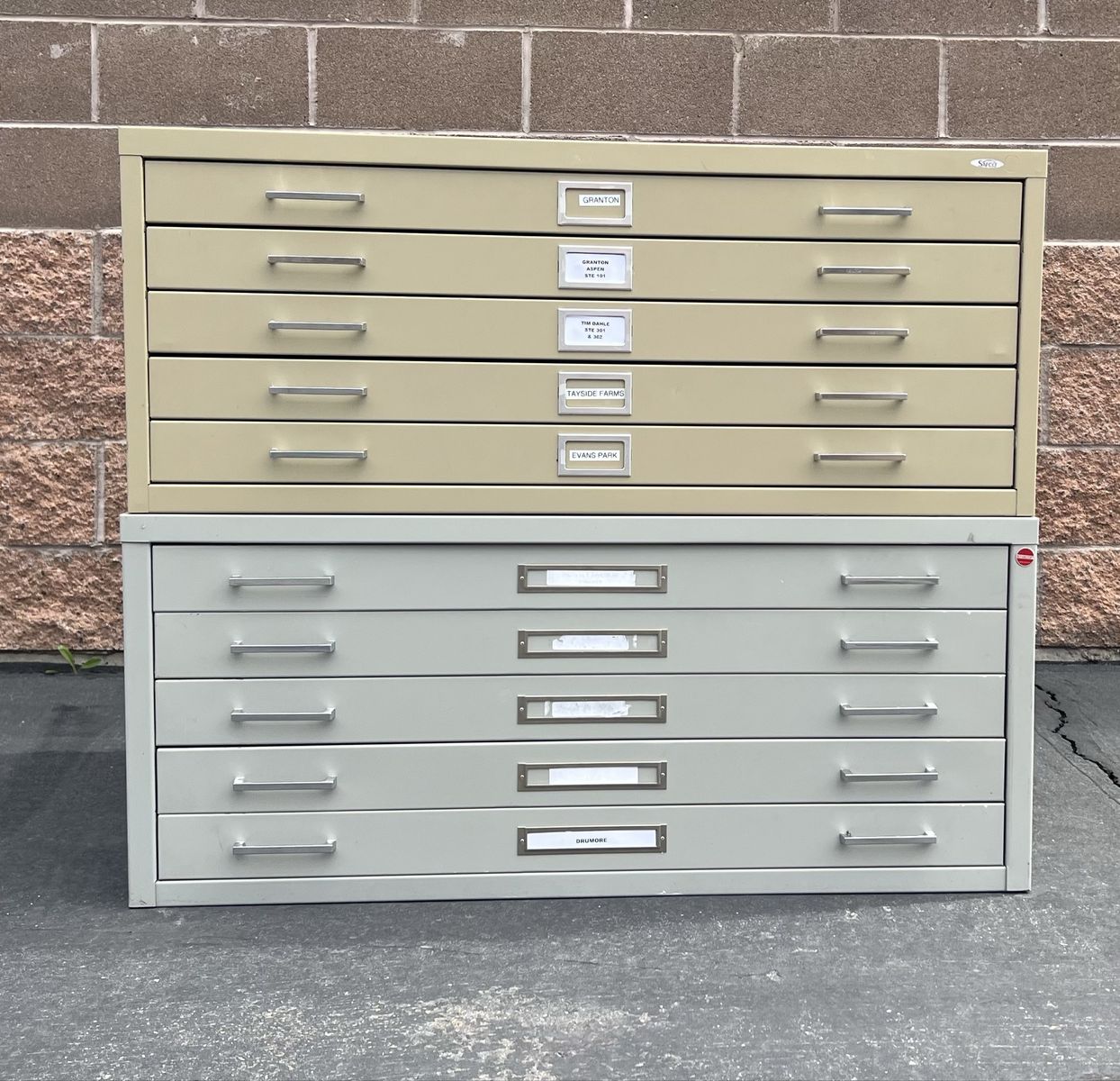 SLC. One for $450 or both for $825. Good, sturdy condition. There are some light scratches/scuffs. No damage. Cream 14.5t Gray 17.5t 41w x 29d