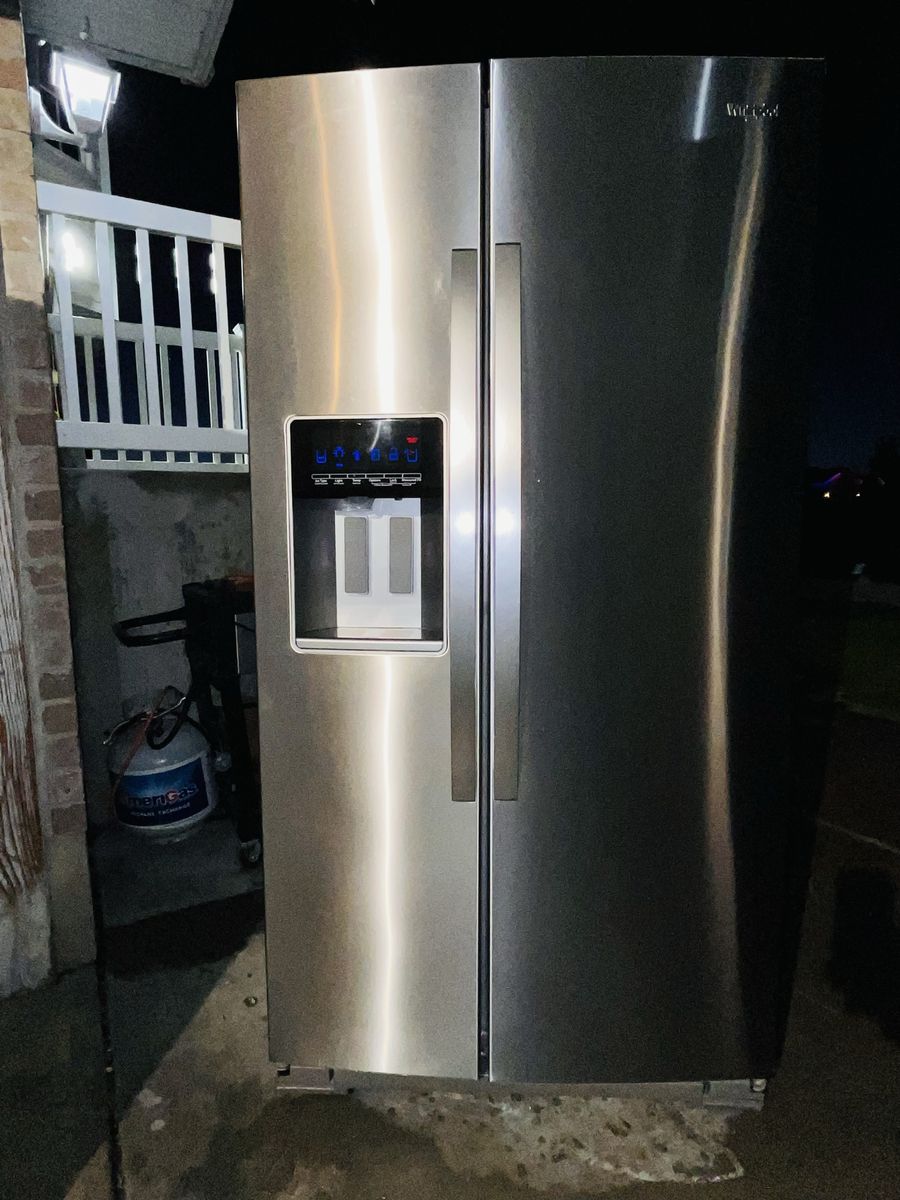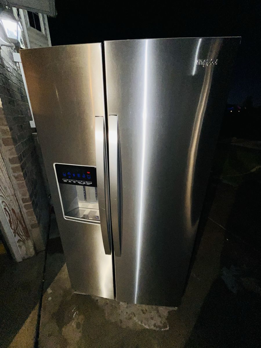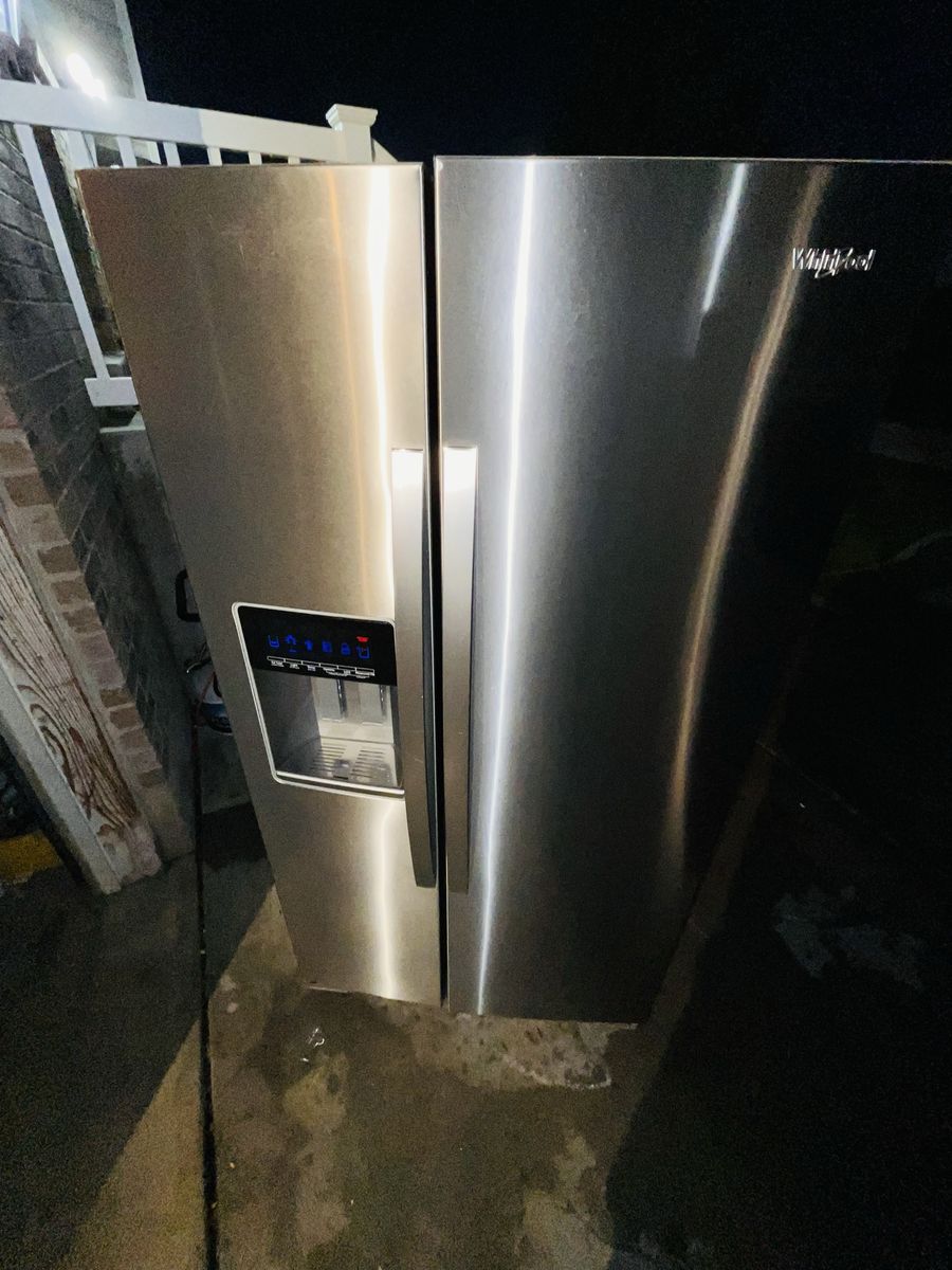 ApplePayIm selling good refrigerator whirlpool side by side stainless steel, everything works perfectly conditions, 35”3/4 inch wide 68”3/4 inch tall, for more information please call or text Johnny delivery available.