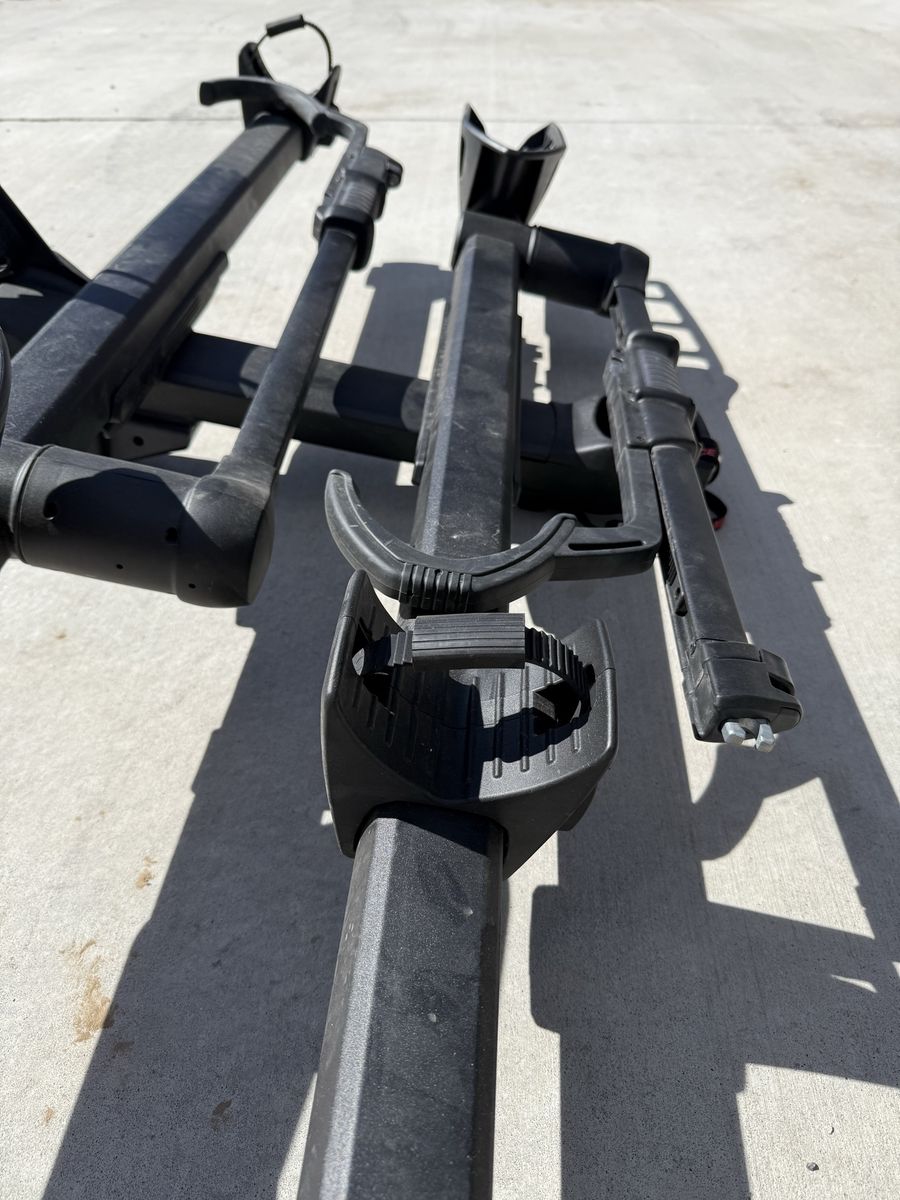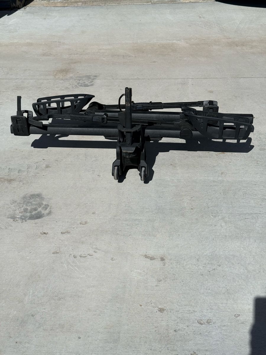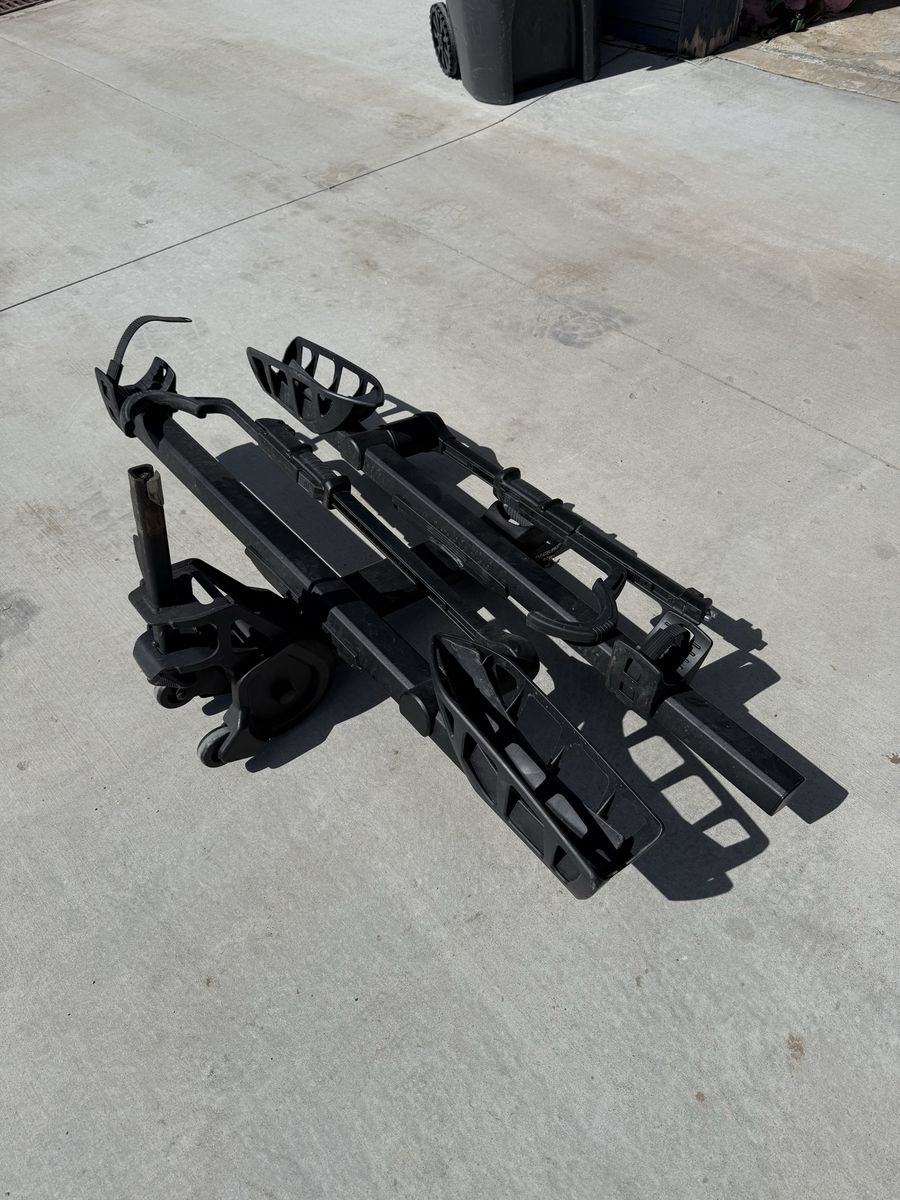 ZelleFor sale is a used, like new, Thule T2 Pro XTR 2-Bike Hitch Rack with 1 1/4 in hitch receiver size. This Thule rack secures 2 bikes up to 60 lbs each with no frame contact and tilts for trunk access. It’s simple to install and remove without tools and has wheels so it’s easy to move.